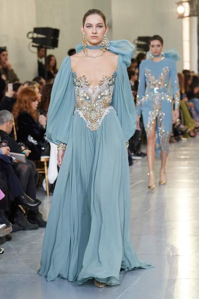 Elie Saab: Elie Saab this season felt like a richer toned-down version of Zuhair Murad. The colors were magnificent, the details were beautiful and the fabrics were so lush. The collection was inspired by an opulent Mexican castle and the looks were surely regal. The shades of pink, blue, and the lime gowns were mesmerizing. A red carpet favorite Zuhair Murad had a lovely collection this season. Not a fan of belts but they worked really well here and the complimenting scarfs werea great addition. The embellishments used to cinch the wait were quite beautiful.