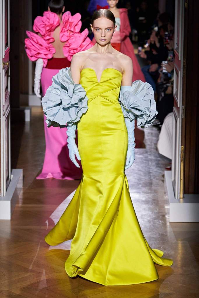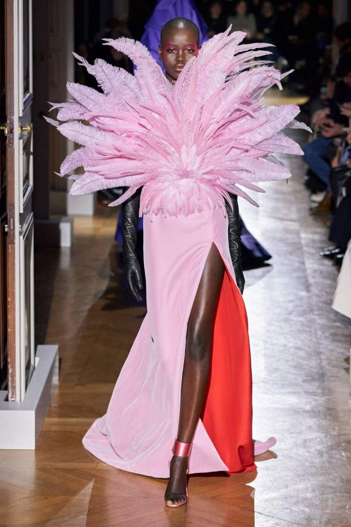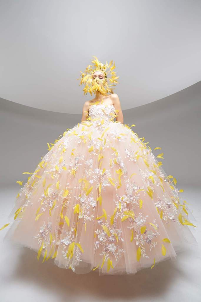 Giambattista Valli: With Giambattista this time I either loved the looks or really couldn’t care of them. The feathered masks were dramatic and chic and so fun. The big yellow tulle dresses in the final looks were absolutely gorgeous though I can’t ignore the fact how much they reminded me of Rihanna’s iconic omelet dress for the Met Gala. l did like the all-white gowns but the floral prints were just not good. The standout looks was definitely the light pink tulle dress with white and yellow feathers paired with a yellow feathered mask. I did like some looks enough so forget the others so it works out I guess. Valli is all about extravagant tulle gowns and we got that, so its a win.