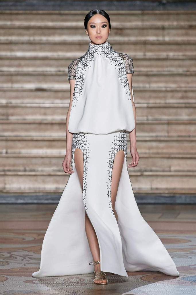 Stéphane Rolland: A pure and elegant collection by Rolland, dominated by gorgeous white looks with a few looks in black, browns, and random pop of colors. The collection was just so clean and in place. All white looks were my favorite and the circle cutout necklines were so sexy yet classy. The blue gown’s color was magnificent. Overall a beautiful collection.