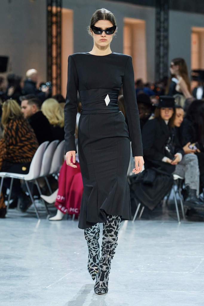 Alexandre Vauthier: This collection had some mindblowing looks, my favorites were definitely the pinstripe suits in White (wore by Bella Hadid) and a gorgeous shimmery black one. The collection had quite a range , be it suits to sexy sequined dresses, tulle bustier colorful gowns, or the perfect pink fairy tale dress. The huge black feather headpiece was magnificent and the black and white animal print Esque dresses were surprisingly elegant. There were some potential red carpet looks as well especially a teal strapless satin gown and screams fancy date night or a shimmery asymmetrical dress.