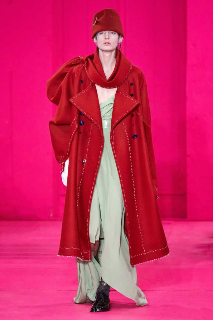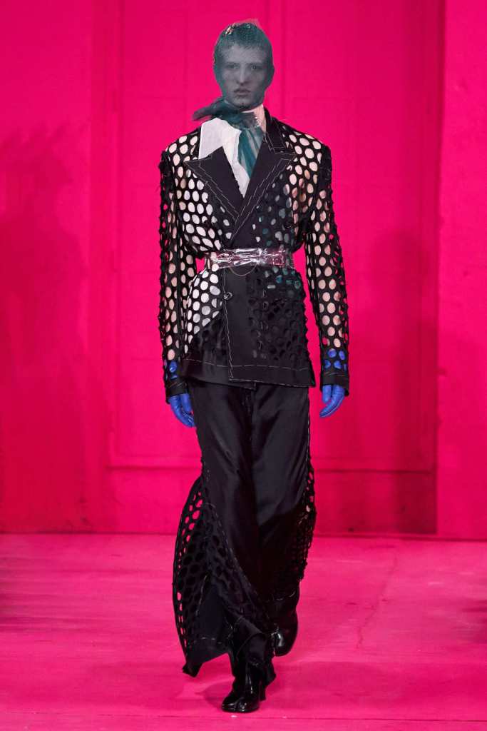 Maison Margiela: First of all I am in love with the pink backdrop. The collection was upcycled and wonderful. I have been a Galllino fan for as long as I can remember and he never really fails to surprise(though they aren’t always pleasant surprises). The velvet looks with holes cut had my heart, it was presented in a variety of colors, styles and variation. There were trenches in a great range of colors; A noteworthy grey deconstructed trench was absolutely stunning. The final black looks were marvelous and the full Overall a strong coleection and I need to stop obsessing over it now.