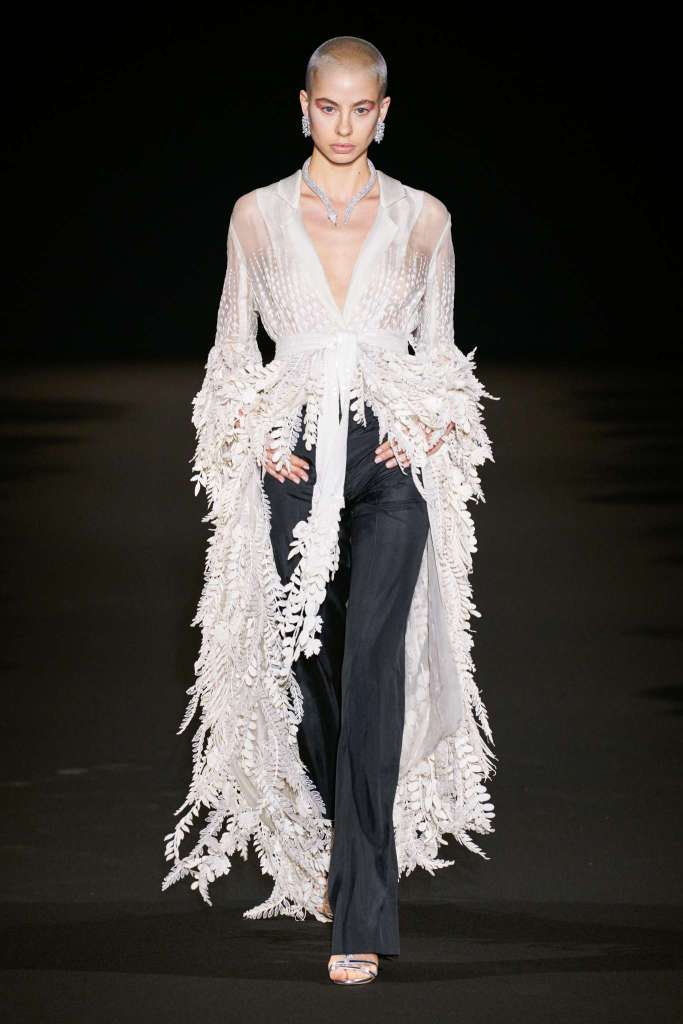 Alexis Mabille: Mabille had all structured and ethereal all-white looks with beautiful necklines and silhouettes, the feathered headpieces were lovely. Each look was clean and elegant and hot. The sheer final looks were so so free and intricate, some looks were more structured which somehow made every look very unique. The necklines and the smartly places cutouts were definitely the star of this collection. The show was opened by Dita Von Tesse in a black sequined tuxedo which was in solid contrast to the rest of the collection.