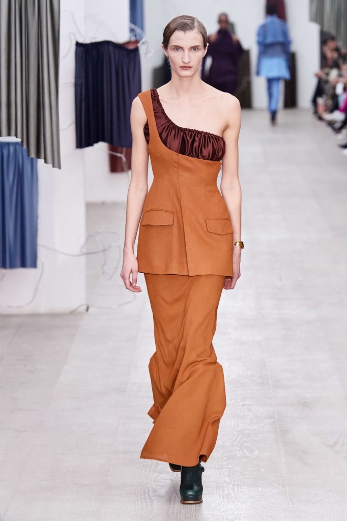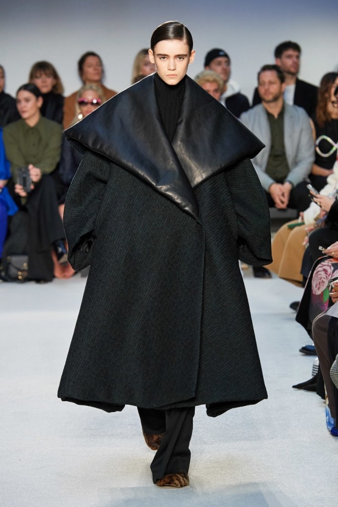 JW ANDERSON: Absolutely stunning, the oversized huge trenches, unusual, silhouettes, and the beautiful cellophane. One of the best for sure. the checked suits with cellophane on the shoulders were beautiful, the sweater dresses, and the black suits.