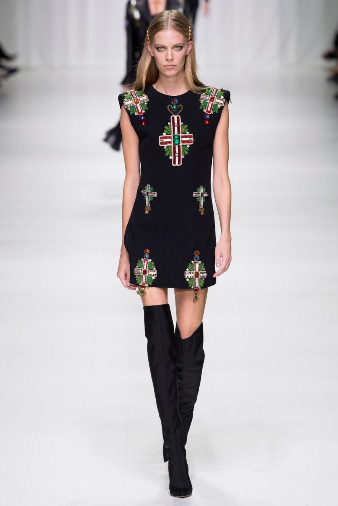Though I’m not the biggest Versace fan, this collection is pretty special. This collection marked the 20th anniversary of the tragic death of Gianni Versace, This was Donatella’s best collection since then, mainly because it was a revisit of Gianni’s iconic looks. She did celebrate him in the most beautiful way possible. She might not be my favorite creative director but she is a brilliant businesswoman. The show was a beauty, all Versace’s most memorable looks and moments. The show ended with the 5 original supermodels Naomi Campbell, Cindy Crawford, Carla Bruni, Claudia Schiffer, and Helena Christensen in gold dresses. Donatella recreated the looks wonderfully and is definitely a favorite Versace show for times to come.