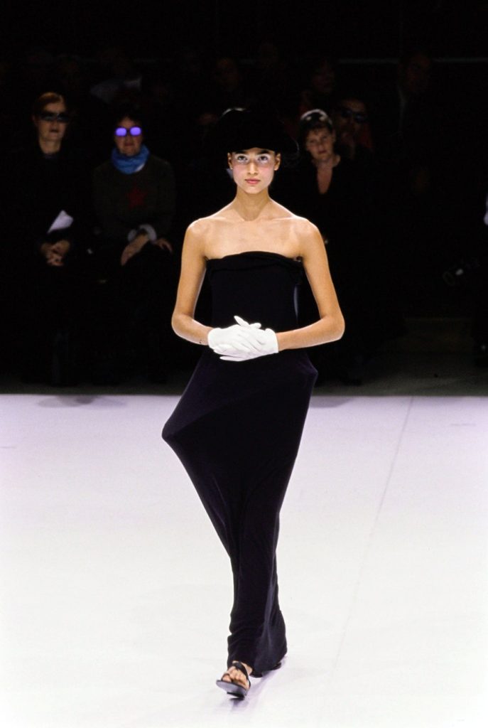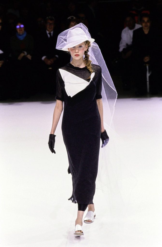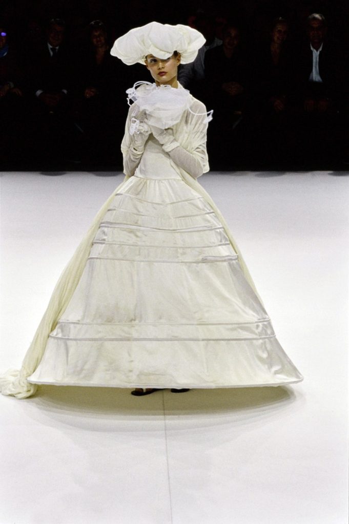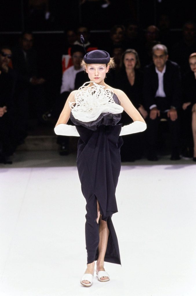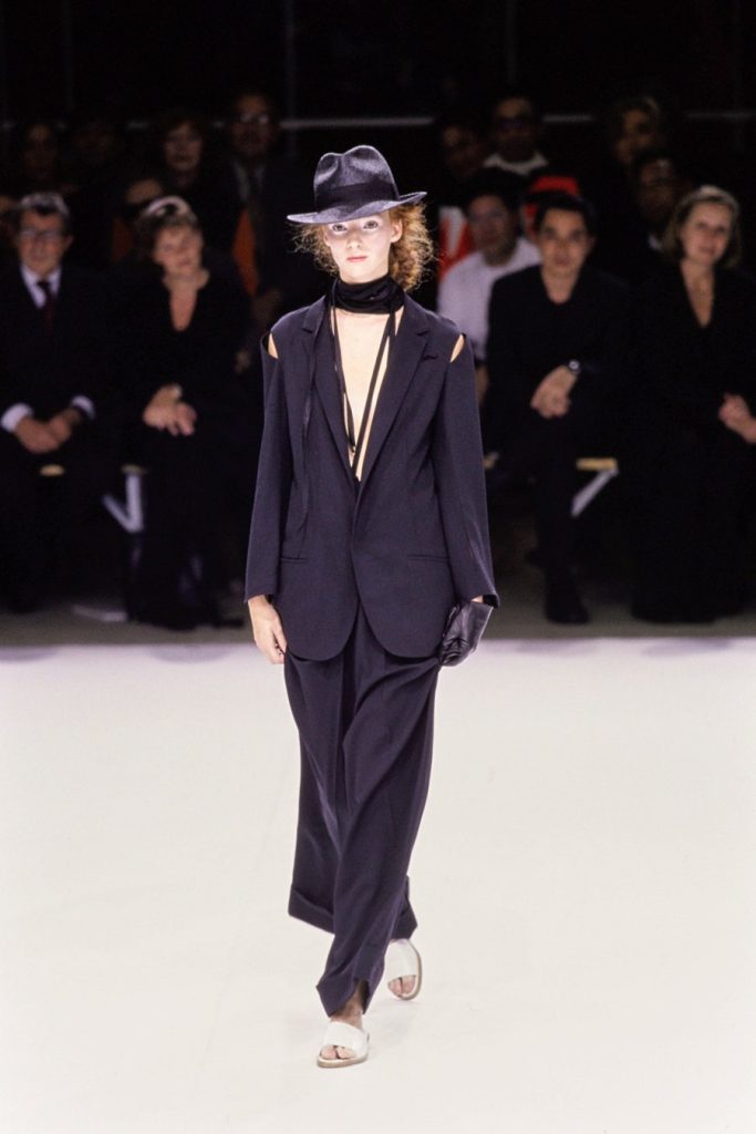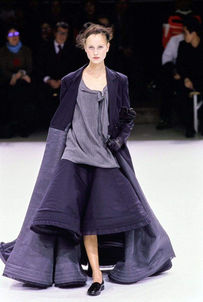 One of the most brilliantly wonderful shows in the history of fashion, Yohji Yamamoto’s spring-summer 1999 is beyond words. Tim Blanks called it “one of the most enchanting fashion shows I’ve ever seen” “As the show went on, it got more and more and more delightful. It took the audience somewhere; people were gasping and cheering. The things that happened to the clothing were just magical.” And Suzy Menkes called it the “zenith” of his career. Shalom Harlow said that it was “one of my all-time favorite shows… I think there was beauty and poetic sadness and laughter and humor.”