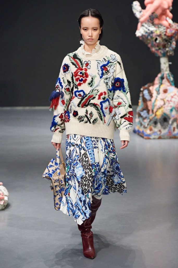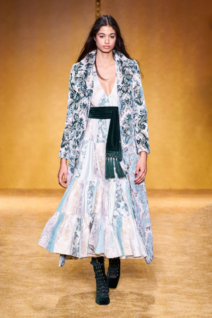 TORY BURCH: Some fun prints and beautiful looks. This collection was surprisingly good. There was something about it that stuck with me. The bags were really nicely done and ugly sweaters were kinda cute too. The printed boots in mustard in olive green were quite nice too. Overall I really liked it.