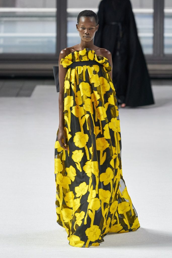 OSCAR DE LA RENTA: A lot of color for sure. The evening wear looks were lovely and there was a black velvet gown with humongous white feathers which was gorgeous and the red Bella Hadid look was fabulous.