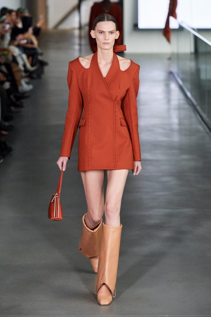 DION LEE: Dion Lee was wonderful. The tailoring was almost perfect. The orange and blue tie-dye ( which I generally hate) looks were lovely. There was a white dress with gold chains which was very reminiscent of a Bottega Veneta look. Definitely favorite Dion Lee collection ever.