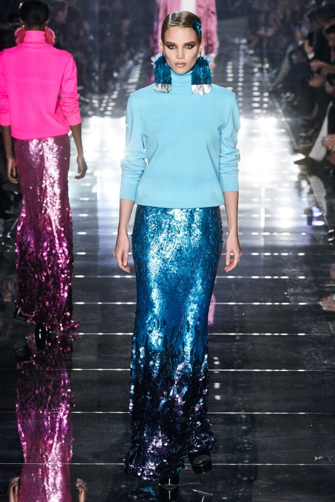 TOM FORD: Tom Ford was hot. It had some beautiful evening wear looks and some fabulous feathered earrings. That one bridal-esque look was magical. A wide array of colors and materials. Looks that stood out for me were two pink and blue looks with sequined skirts and turtlenecks. Overall a pretty good collection.