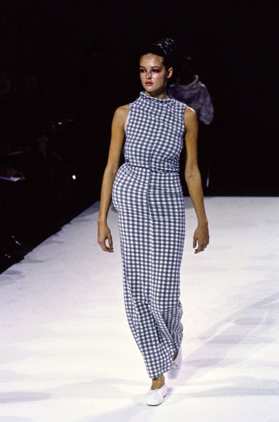 Back in 1973 when Rei Kawakubo founded Comme des Garçons, she questioned everything. She was anything but conventional. Body Meets Dress, Dress Meets Body is a collection by Rei Kawakubo of Comme des Garçons For Spring Summer 1997. The show has extensive use of padding, not Shoulder pads or breast pads but lumpy rolls of padding all over the body the abdomen, the hips, the back, and all over. The collection had a lot of gingham and relatively a lot of color and almost no use of her signature black color.