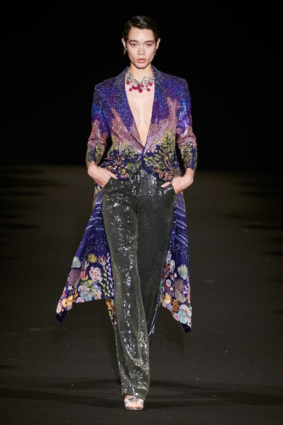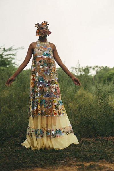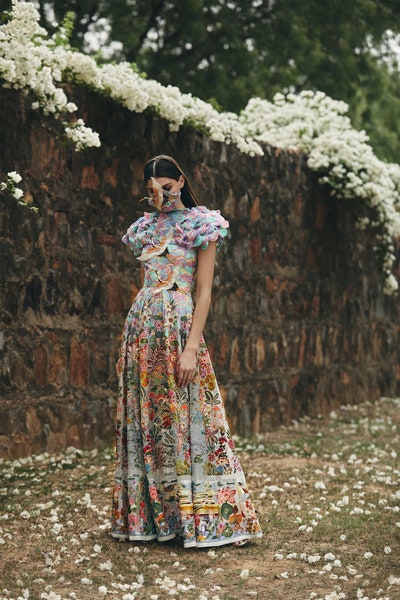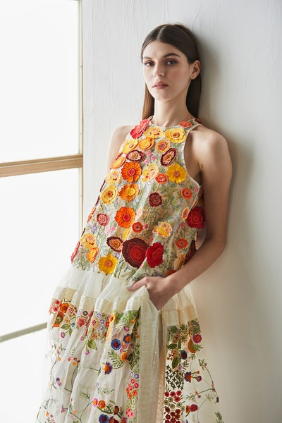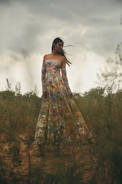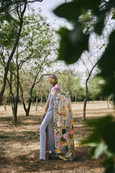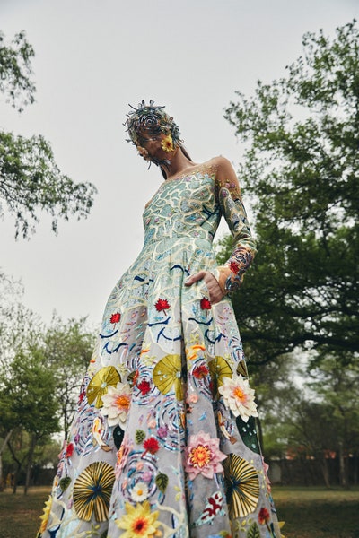 A bit of backstory on Mishra, the first Indian designer to present at Paris Haute Couture week. In 2009, he became the first non-European designer to win a scholarship at Istituto Marangoni, Milan, Italy. In February 2014, Rahul Mishra was the first Indian to win the 2014 Woolmark Prize at Milan Fashion previously won by Karl Lagerfeld, Giorgio Armani, and Yves Saint Laurent. His work involves the finest of hand-woven, hand-embroidered and handcrafted pieces and emphasis to push Indian craft techniques in new directions. Each of his couture pieces takes almost 3,000 to 4,000 hours to make along with generating employment for artisans and embroiders. “My objective is to create jobs which help people in their villages; I take work to them rather than calling them to work for me. If villages are stronger you will have a stronger country, a stronger nation, and a stronger world. My entire philosophy revolves around that. The product will go through evolution — it will change, improve — but the philosophy is constant. “said Mishra in an interview with CNBC.