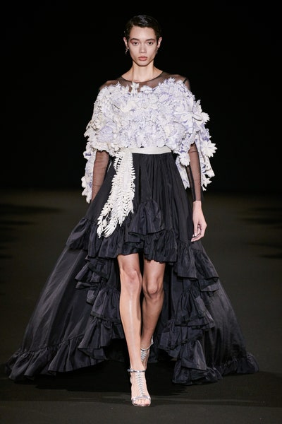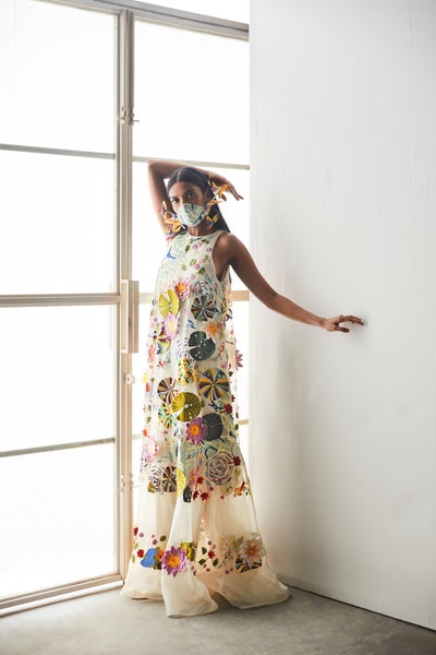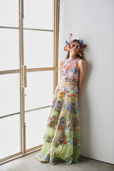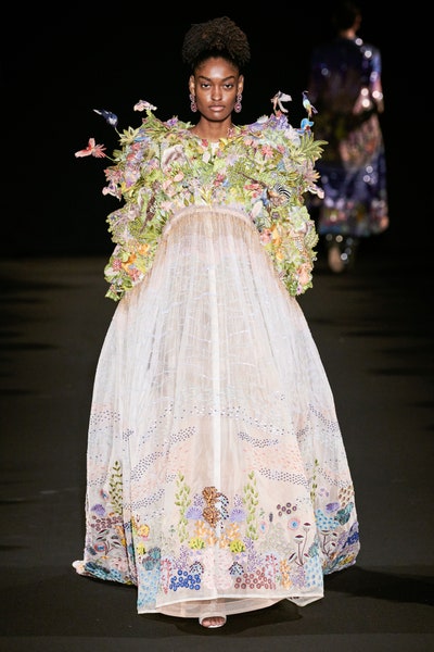 For this Fall 2020 Couture, he questioned the meaning of these (pandemic) times. A warmer color palette this time with equally exquisite work and detail with butterflies being the highlight. It was a bit more floral, a bit more colorful, and featured the most gorgeous face masks.