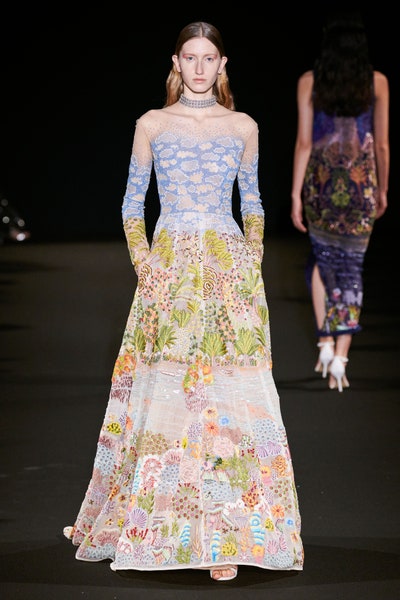 For his Spring 2020 Couture, he played around with the concepts of underwater life and nature. Starting with some ethereal white looks gradually moving on to bright yellows and blues, each artfully embroidered and carefully put together. Each of his pieces screams luxury but in a more charming way.“I don’t know if I need to make and sell another black jacket; the idea is to be less volume-centric while taking care of people.” He said to Vogue.