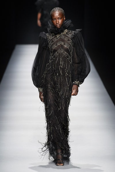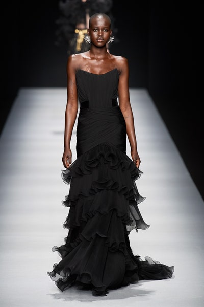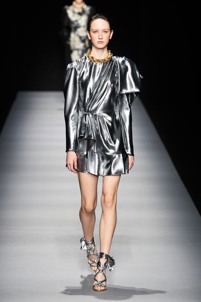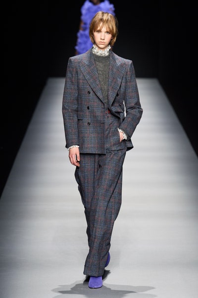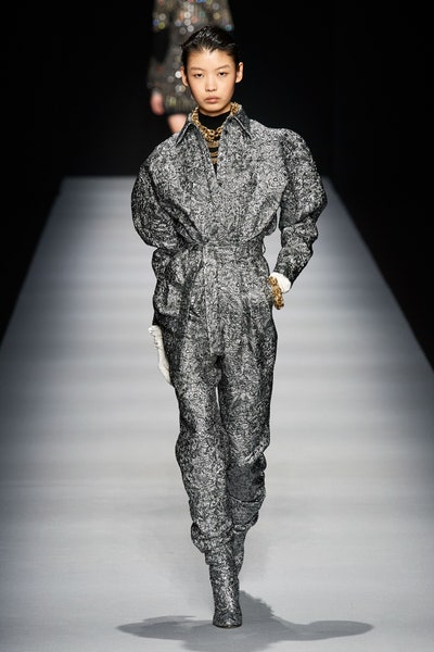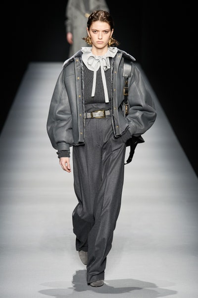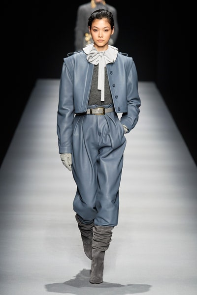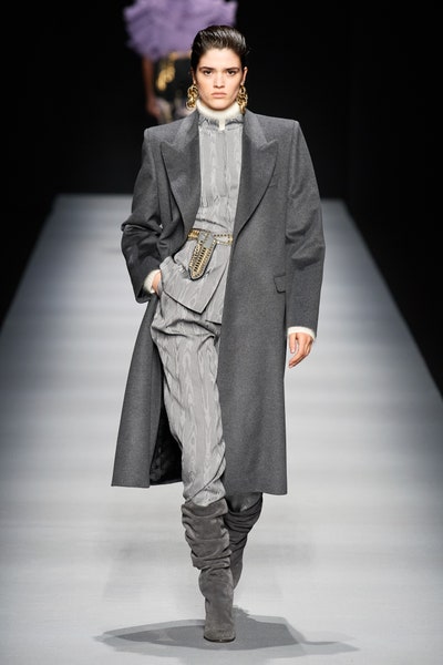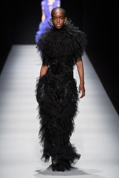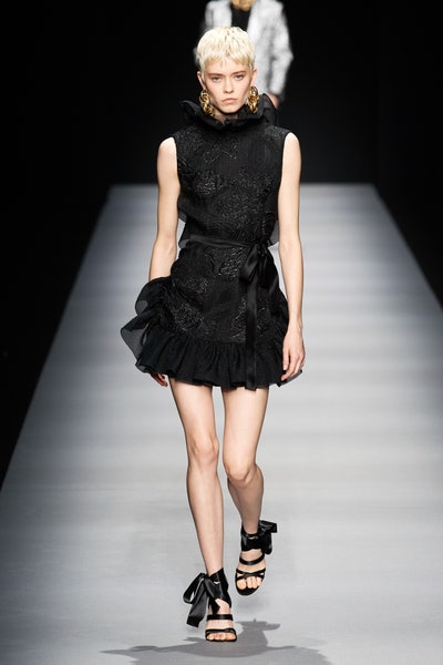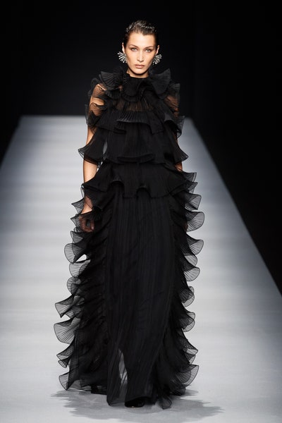 This Alberta Ferretti collection started with exquisitely tailored looks in black and greys. With beautiful jackets and coats paired with high-waisted harem pants. With an overall Black collection, there were a few pops of color, through beautiful ruffled looks. The show closed with a few wonderful eveningwear looks. A very 80s modern collection for today’s women with strong commercial attractiveness. I feel this new direction Alberta Ferretti has taken with her brand is a smart move and seems to be doing well. The pre-fall 2020 collection was absolutely stunning and I cannot wait to see how it’ll move ahead.