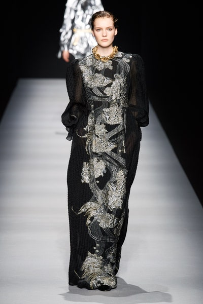 “I can’t see why women cannot look delicate and act tough,” said the designer in 2009. Though she seems to be moving away from her signature ethereal dresses that doesn’t mean that the Ferretti woman isn’t feminine. She seems to be more practical and real. Though this collection seemed like a seamless blend of Armani Prive and Clare Waight Keller’s Givenchy