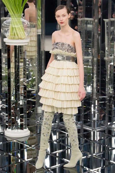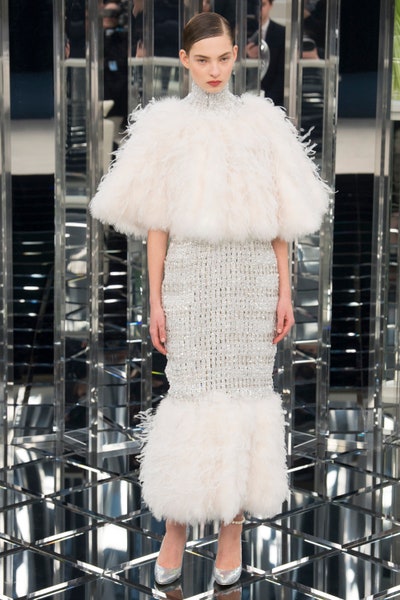 Karl Lagerfeld is the only person who can make a mirrored runway at the Grand Palais seem minimal(relatively minimal). And let me tell you the collection was anything but simple, with a lot of sparkle and feathers this collection was the definition of glamour, fantasy, and drama.