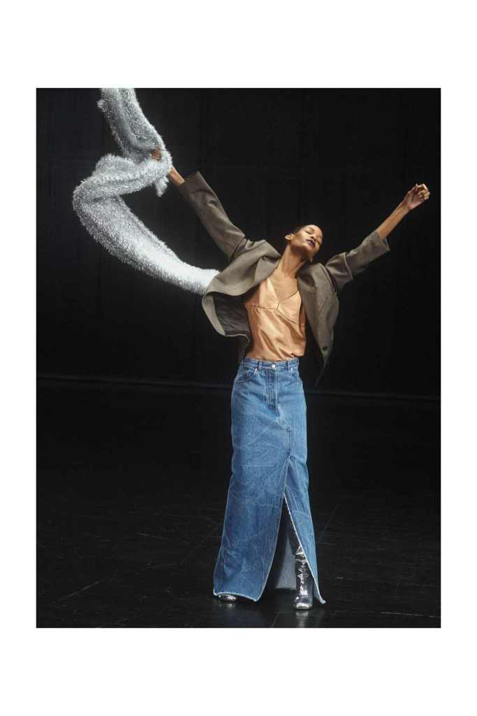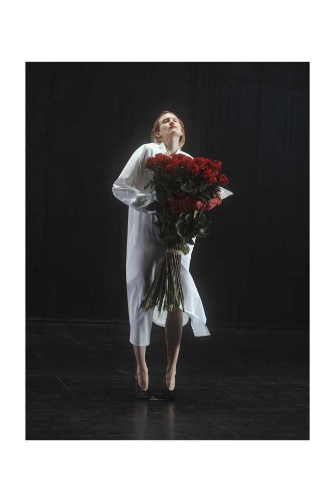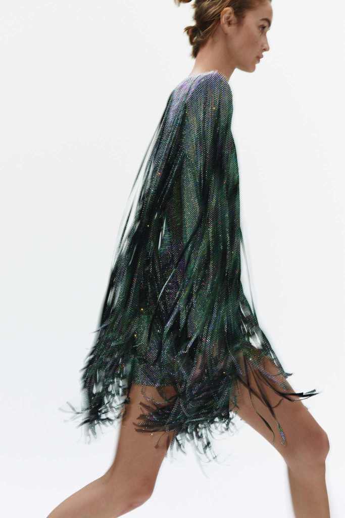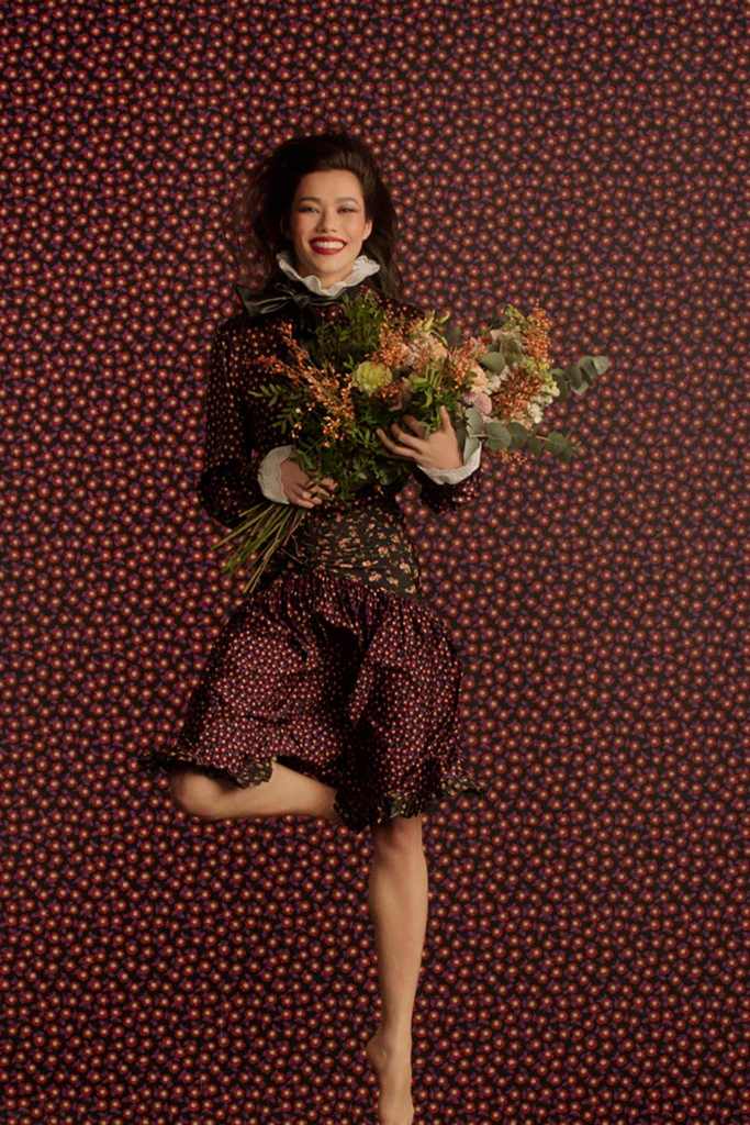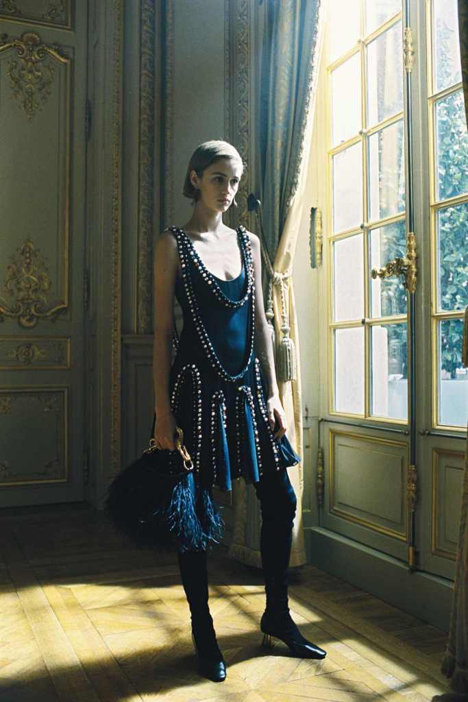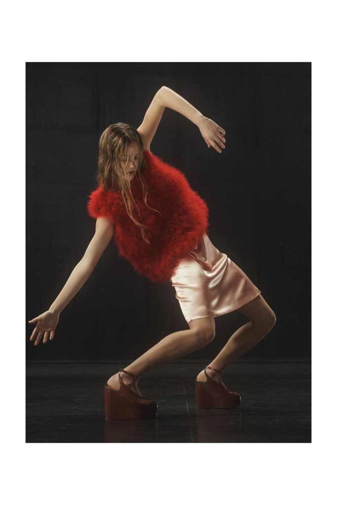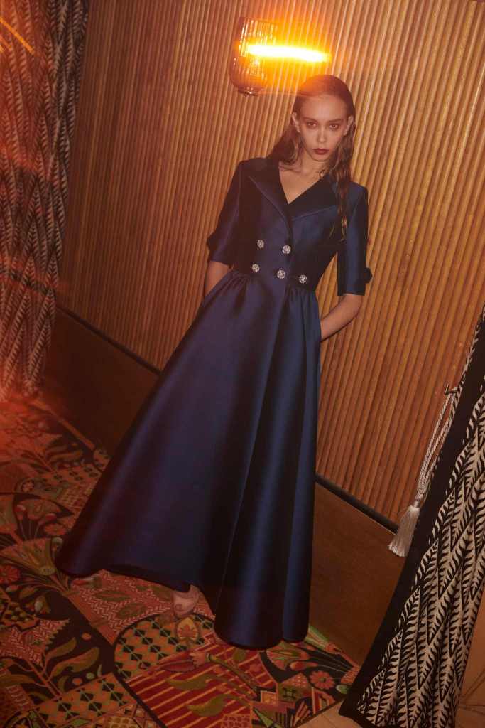 Dries Van Noten: A deeply poetic energy persisted throughout the collection. In retro-romantic colors, there were dramatic elements and animal appeal. It started with a woman wearing a white dress holding a big bunch of red roses and progressed with a focus on movement and dancing. The standout looks included a blue blazer with fur-trimmed sleeves and a seductive pink-red sequined dress.