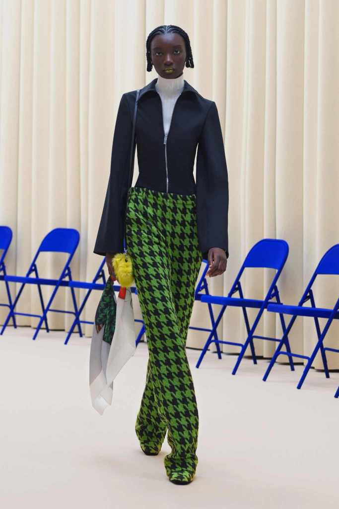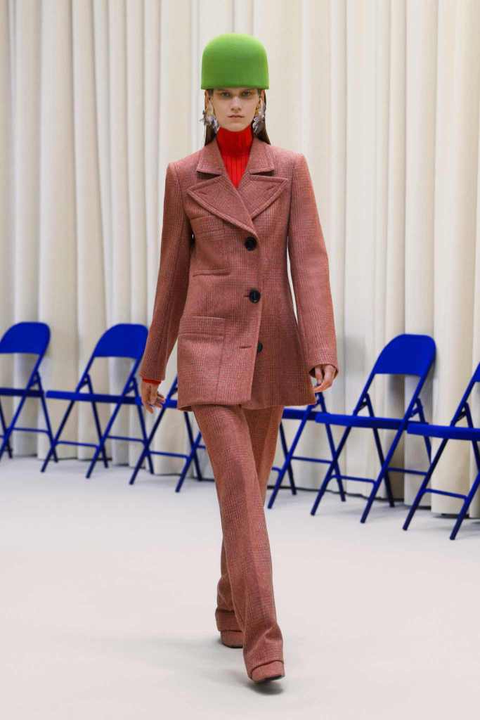 Nina Ricci: If you ever need to buy a wardrobe from scratch this collection is the place to start. With some bold suits, delightfully fitted pants, quirky outerwear of course paired with some Ricci hats. The noticeable look here was a pair of green houndstooth pants paired with a skin-fit jacket with flared sleeves. With a hint of sportswear, exquisite tailoring, funky colors this was quite a democratic collection.