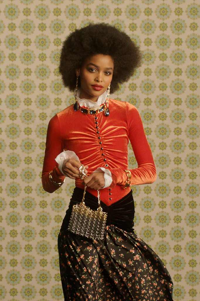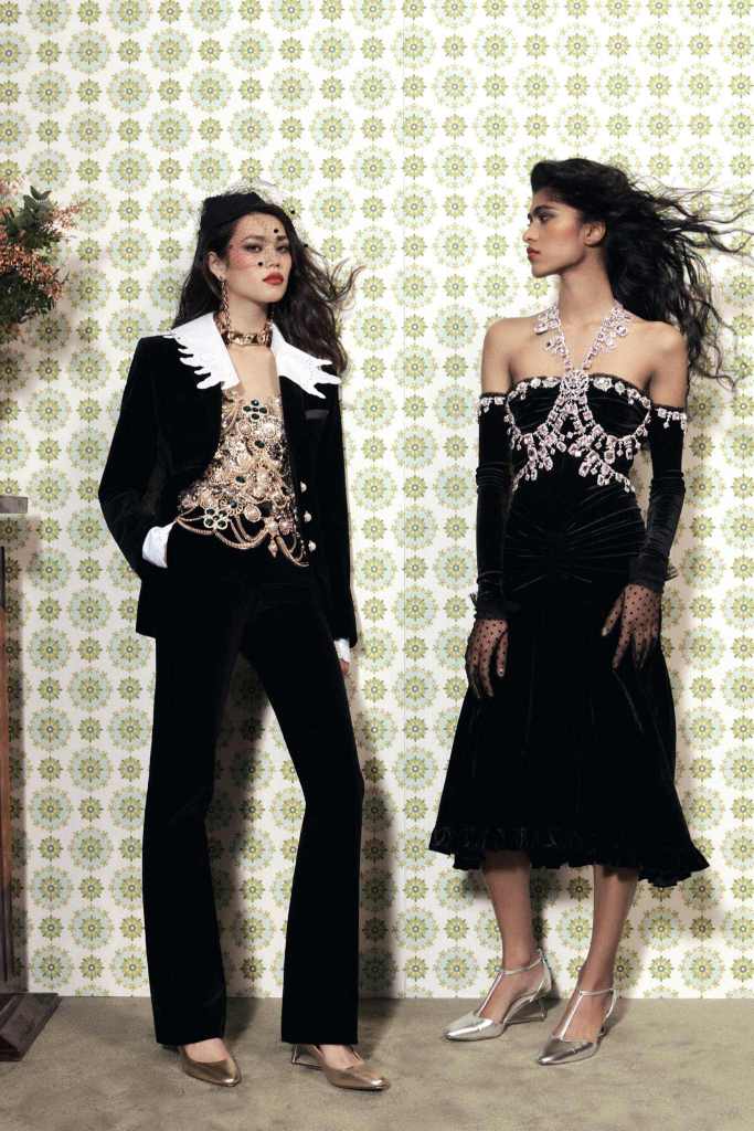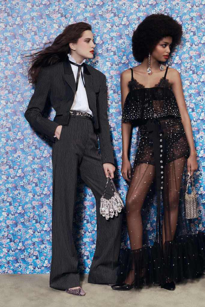 Paco Rabanne: “It’s just about girls enjoying themselves, releasing that vibration of genuine pleasure.” and this is all we needed. Paco Rabanne was simply glorious this season. The way Julien Dossena plays with Rabanne signatures is admirable. The first two looks; a slinky suit and an off-shoulder dress, both black-velvet and heavily embellished were marvelous. Throughout the collection sparkles, jewels, velvet, chainmail, vintage wallpapers, and demure dresses came together to make us dream and dream.