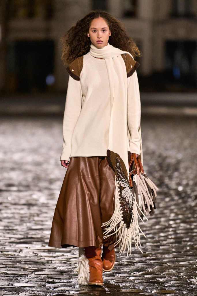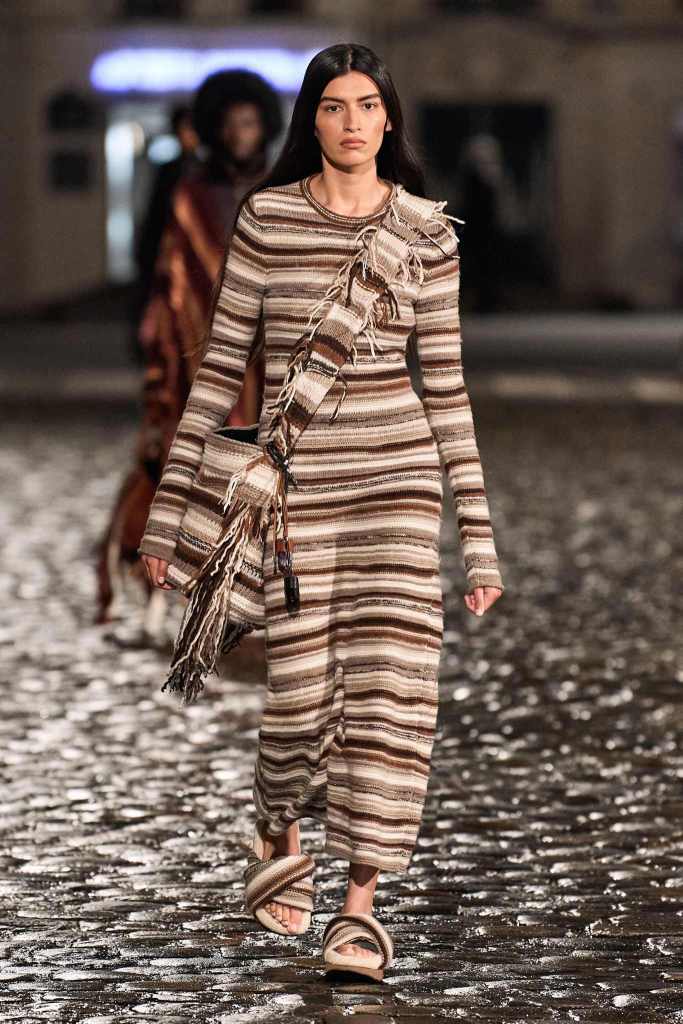 Chloé: The strong focus on this collection was sustainability and self-assurance, Gabriela Hearst continued with leftovers from Natacha Ramsay-Levi. She said “New isn’t always better,” and nothing is truer. Comfortable silhouettes, bohemian colors, and a sheltered energy defined her debut. Clean flowy gowns, knitted maxi dresses, and some patchwork jackets were delightful though the accessories were a lot to process.