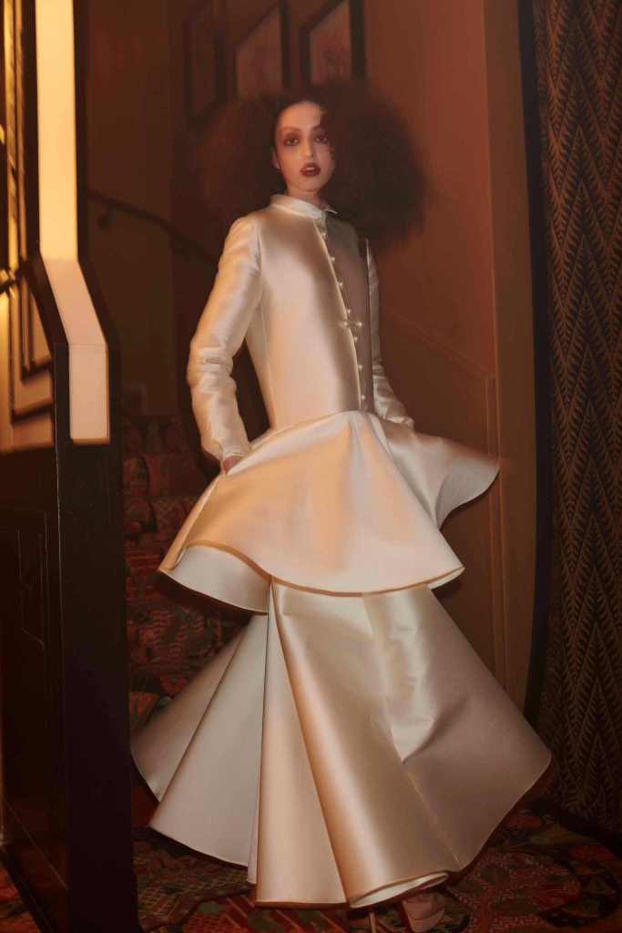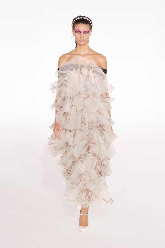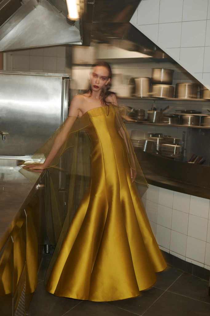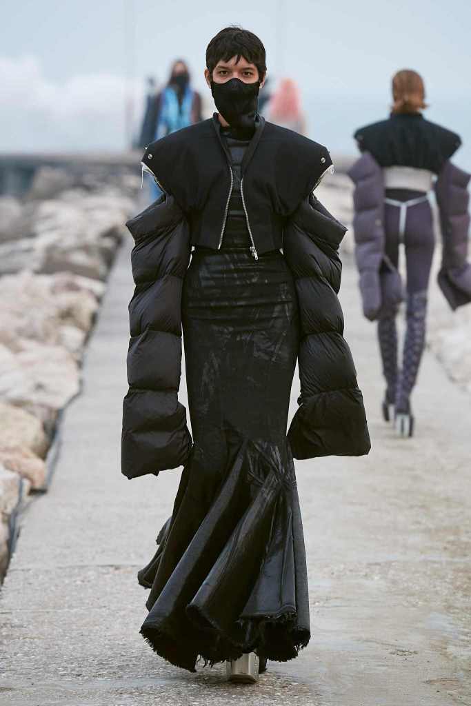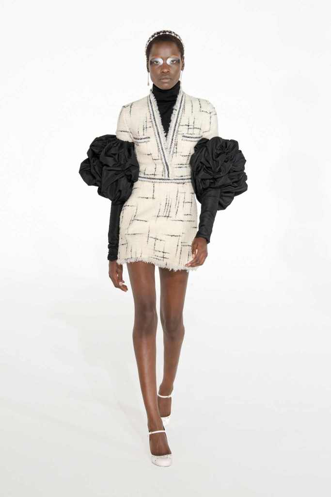 Thom Browne: Thom Browne, it was in all sincerity exquisite. Created with some conventionally rigid silhouettes but softened by the brilliance of Thom Browne. Sprinkled with some old-school glam and all monochromes. The details were vital in this collection. Patches, puffer shawls, big bows, mild corsets, cropped jackets were many among the defining elements. Of course, the gold puffer gown was magnificent.