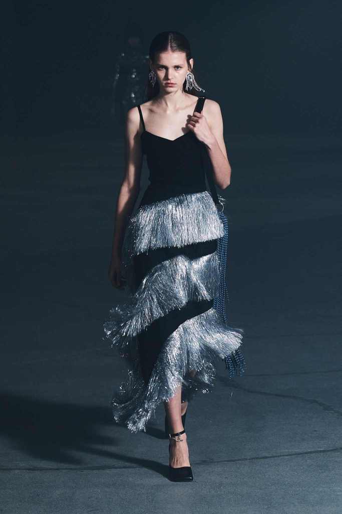 Rokh: Rokh was so glamorous this season, with soft tailoring, slinky dresses, and numerous statement pieces. There was a little bit of fur, animal print, fringe, lace, denim, and just the perfect amount of deconstruction. My favorite look was a black dress tiered with fuzzy silver fringe. This collection disproves my point that I couldn’t love Rokh more; I can.