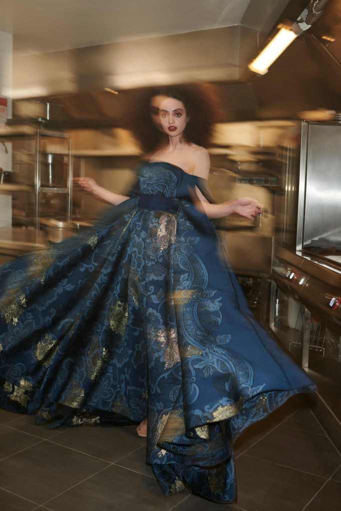 Alexis Mabille: A collection full of neatly cut gowns with extravagant silhouettes was suitable for a regal afterparty. It was lovely. A strapless golden-mustard gown with a coordinated sheer was quite majestic. Comprised of mostly blues, blacks, and dull yellows were the primary colors here. A deep blue double-breasted gown was quite spectacular and reflects on a delicate strength.