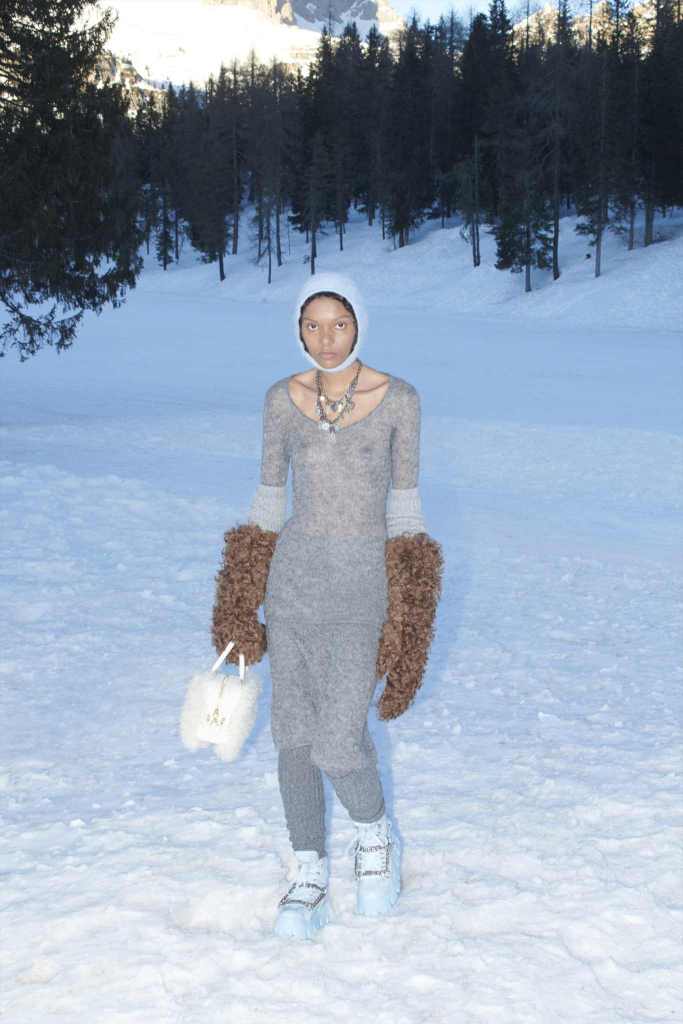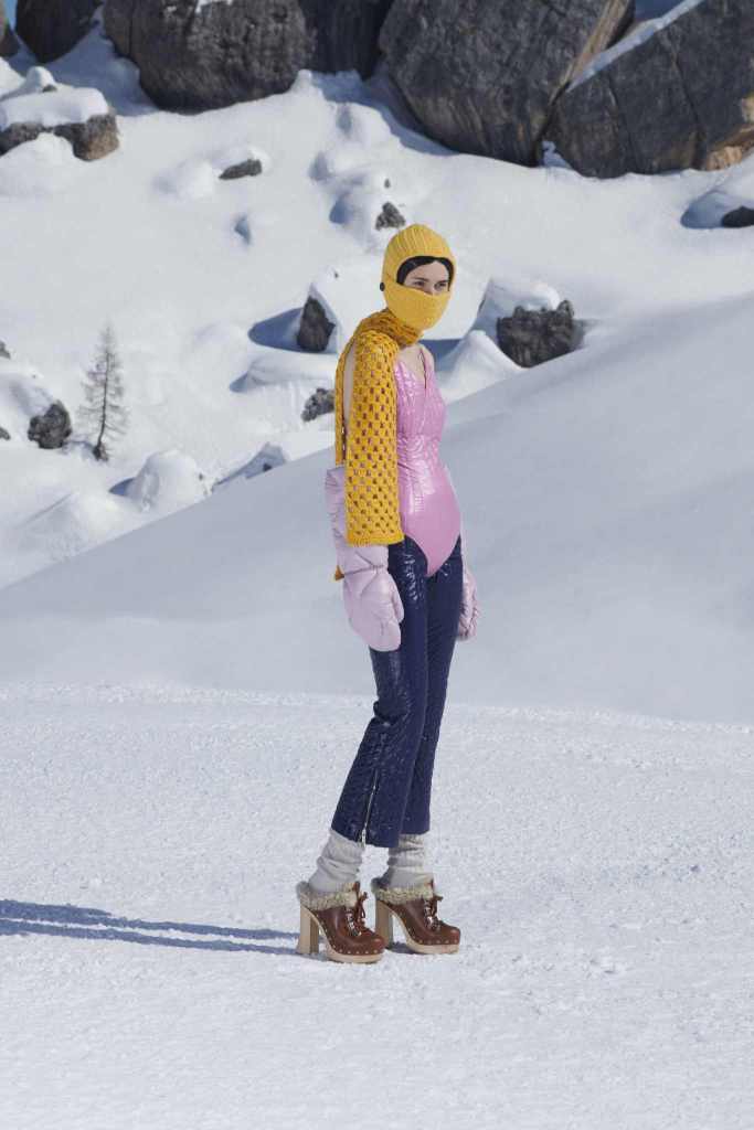 Miu Miu: Miu Miu stated ‘The utilitarian can become beautiful and pleasurable; the decorative can suddenly have reason, new purpose.’ Brilliant stying and daring pieces gave us hope and a spirit of pragmatic fantasy. From enormous fur boots to puffer bikinis and sequined dresses to slinky slips this collection had it all. Knitted masks, mittens, and scarves paired with puffer suits in fairytale colors and intriguing textures. One of the most fascinating and stirring collections this season, Miu Miu was a Miuccia Masterpiece.