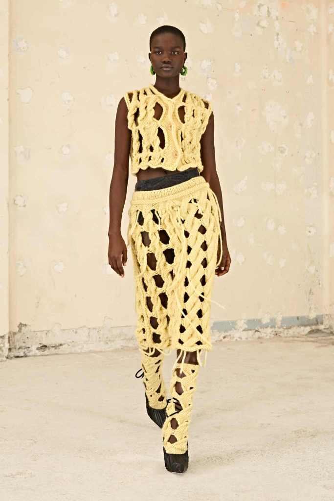 Ottolinger: Ottolinger gives us some badass post-apocalyptic looks with some solid utilitarian pieces and some ultra-modernized feminine looks. A far-fetched mind might consider this collection a version of Kim Shui and Y Projects’ lovechild. Decontronstruced knits, puffers, and gowns were a delight along with the vividly printed mesh looks featuring the surreal work of Cheyenne Julien.