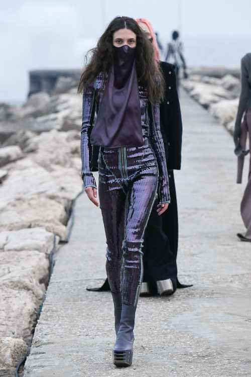 Rick Owens: This collection was a dark dark piece of poetry. Puffer capes, super broad shoulders, and slashed fabrics were the strongs here along with some truly sizzling bodysuits. The highlight looks were two beautifully sequined full catsuits in green and purple. This was a predictable Owens collection, there wasn’t much to root for.