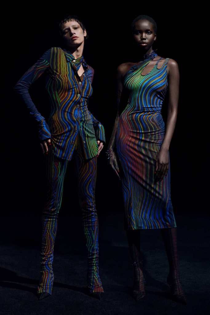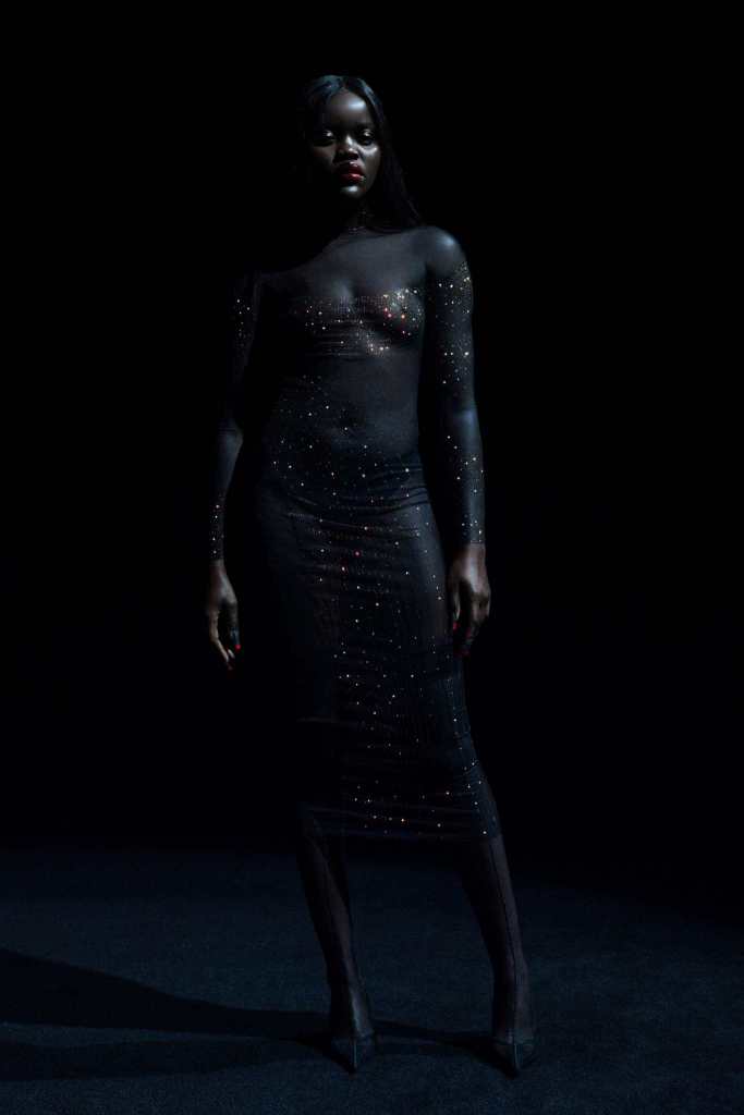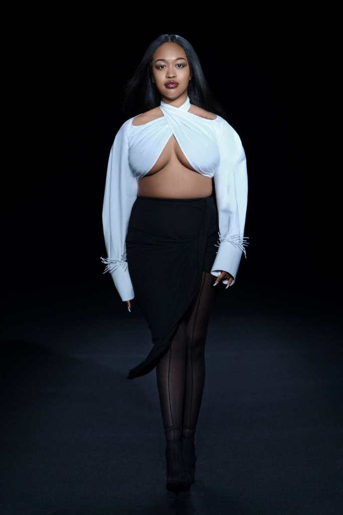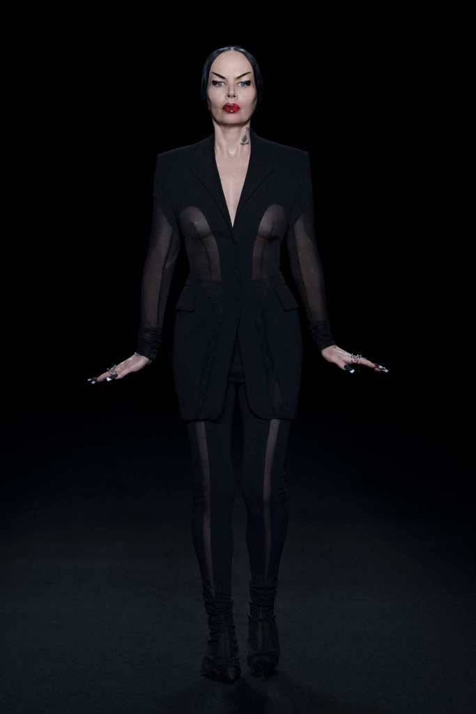 Mugler: A lot is being spoken about Mugluer having repetitive looks, though it might be true it does not necessarily reflect mundaneness but points towards his stable approach. We saw second-skin bodysuits, sculpted tailoring, trippy prints, and some ultra-sheer shimmery dresses; a stand out was some brazenly cut bodysuits/dresses referencing the Couture Spring 1998 collection. Though the star of this was Dominique Jackson and her fiercely hot walk.