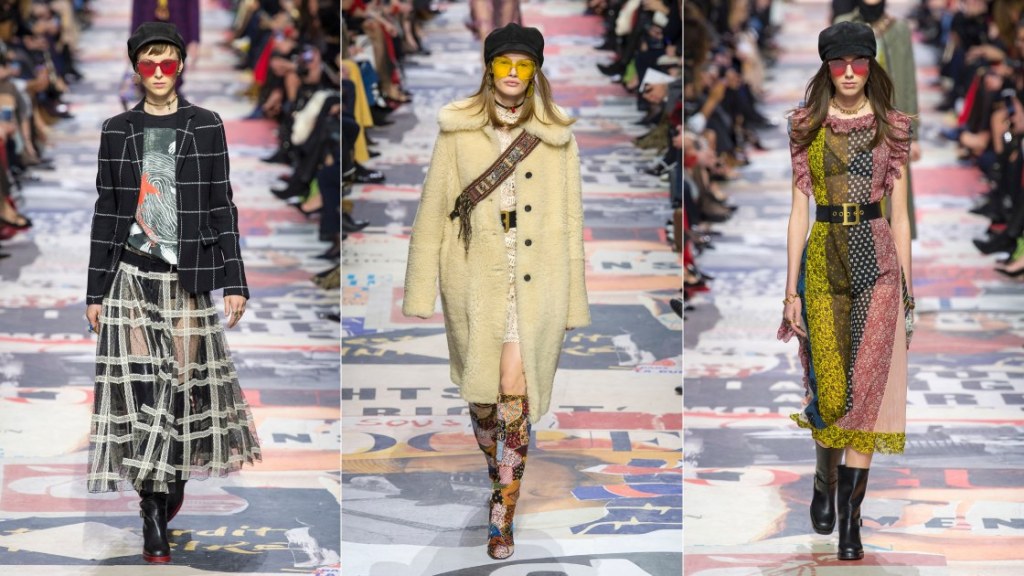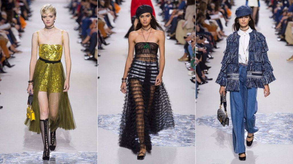 Her Fall 2017 ready-to-wear was inspired by WW2. We saw a mix of boiler suits, stiff denim, and over-worn workwear with feminine motives, a signature of the 70s. Her feminist motives are greatly appreciated but sometimes the sheer bourgeois appeal is unappealing. This was that show that gave us the ‘We Should all be Feminists–slogan’ T-shirt. Slapping the word “feminist” on a T-shirt is not enough and it does not really change the cruel world we, women, live in today. While using the platform to empower women by including transgender women, women with different body types, ethnicities, skin colors, and so on, while raising awareness for the issues we women go through every day. This was also the beginning of her infamous pencil-thin belts. Maria playing and mixed decades was impressive. A lot of underwhelming tulle, badly done denim, and a whole lot of blue.