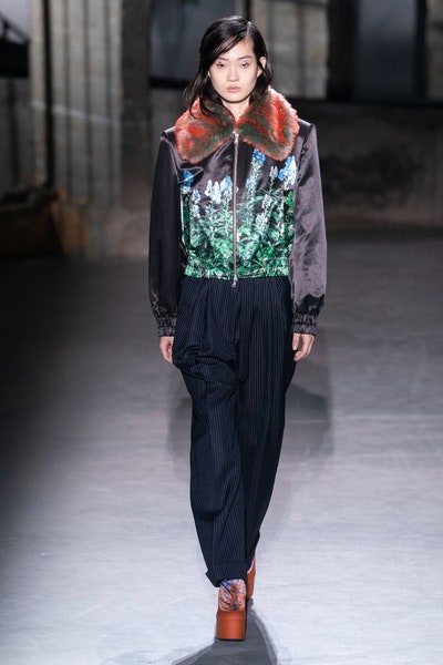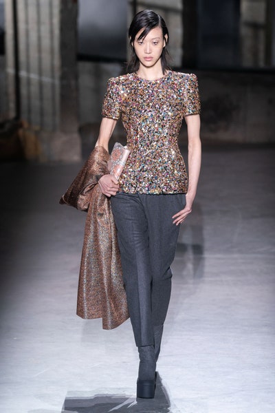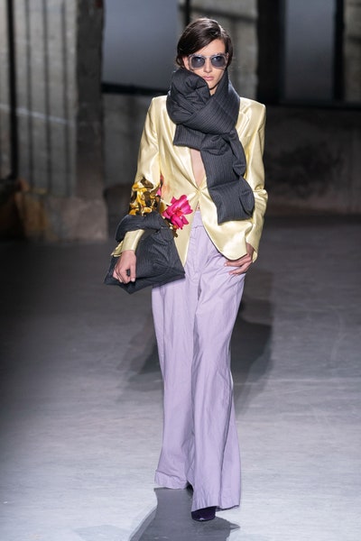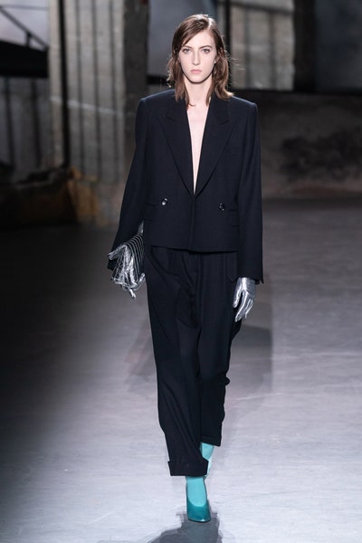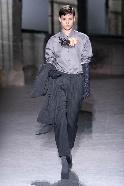 The somewhat gloomy energy that the show started off with was gradually paving the way for a wildly enchanting atmosphere. Refined menswear tailoring was a constant paired with soft mid-1900’s silhouettes.