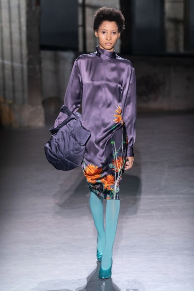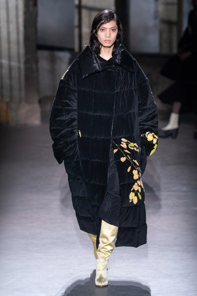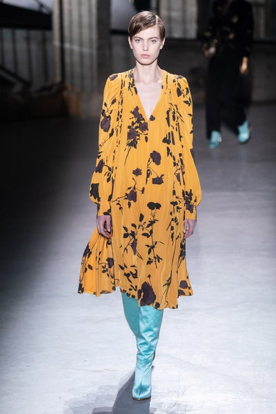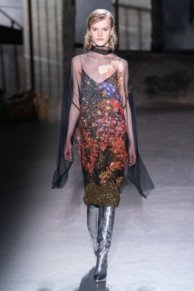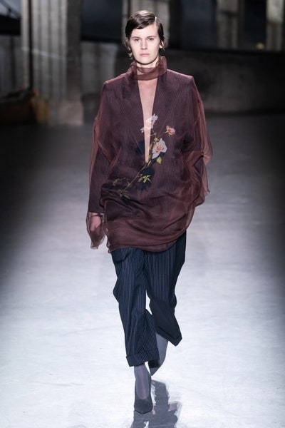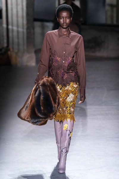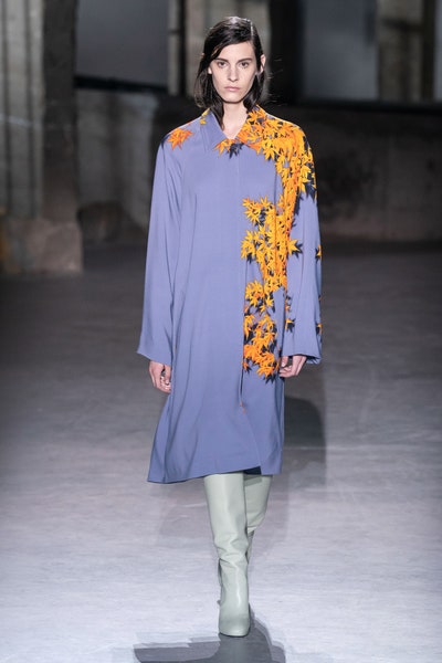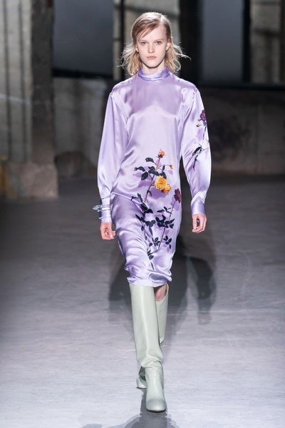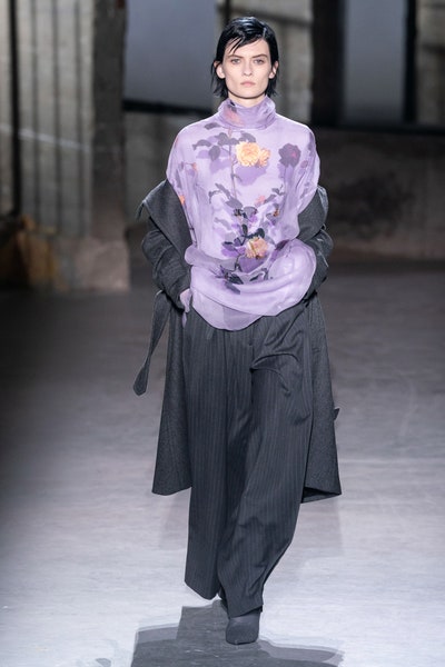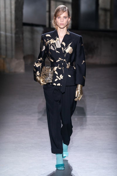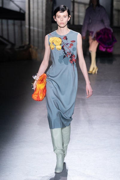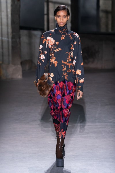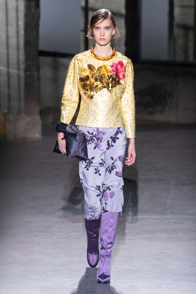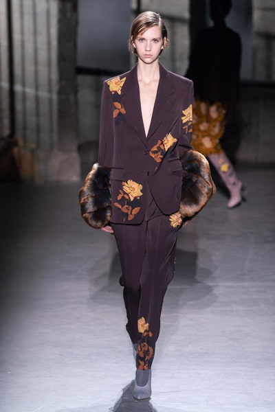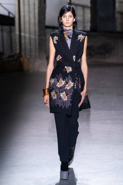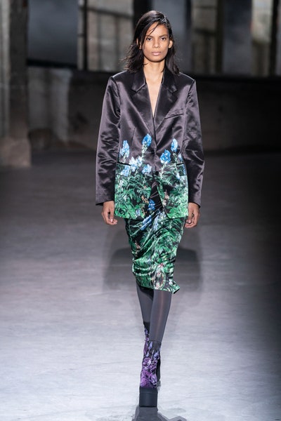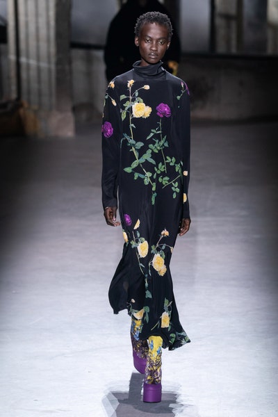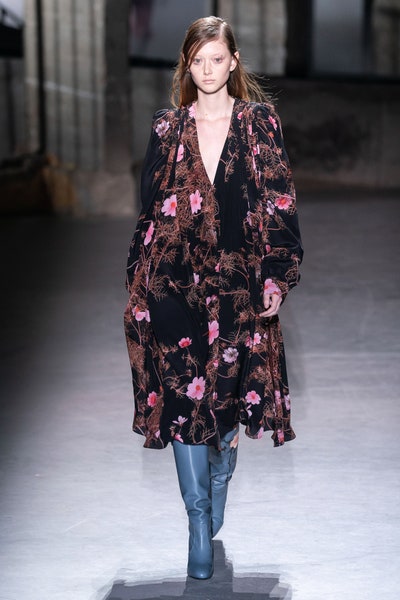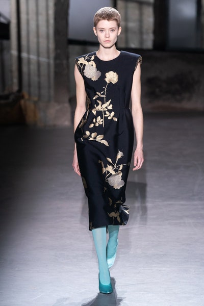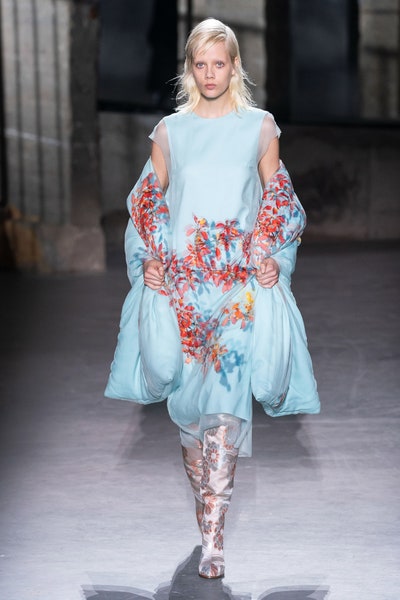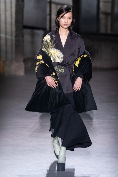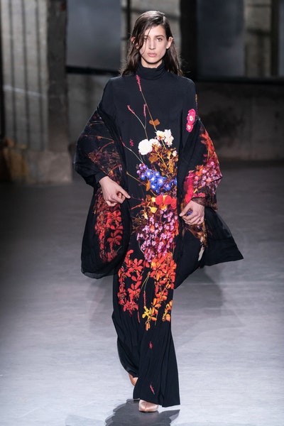DVN photographed 50 varieties of rose, three types of delphinium, and dahlia among many that were incorporated in the clothes. I wanted roses but not sweet roses — roses with an edge, roses for now,” DVN told Vogue. “Flowers can be romantic, but this I wanted to take out, because the times are tougher than in the past. So you see the diseases, the blackspot, the imperfections.”