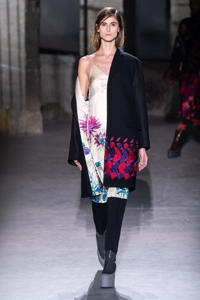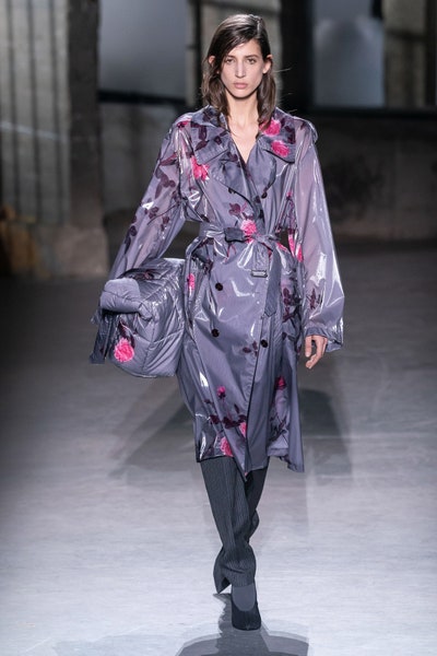 The show started with a few looks all in shades of gray; Look one was a defining pinstripe gray pantsuit with a puffer stole. And I live for anything pinstripe so yes it was a good start. A slouchy coat with a midi skirt worn with sky-high boots was quite a look. Intriguing floral prints were a constant; introduced gradually till the whole collection was consumed by enticing florals. The floral had rather sophisticated and unusual placements. Chic silk dresses couldn’t have been chicer. Floral puffers trenches were a must-have and a sultry sequined floral dress with a tulle overlay(with a floral print) was an absolute dream.