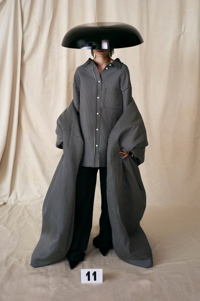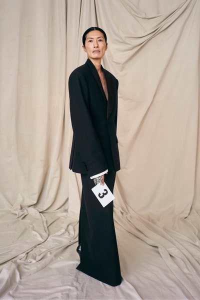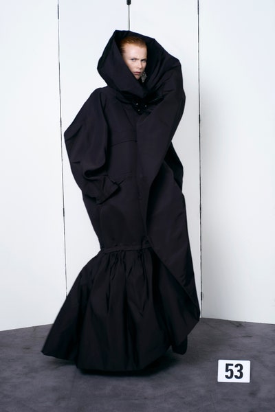 On a freshly wiped off Instagram page and the same reincarnated Couture salon, Demna presented the collection in silence just like Cristobal Balenciaga. All we could hear was the sound of models walking and dragging their couture clothes and the muffled voices of the front row.