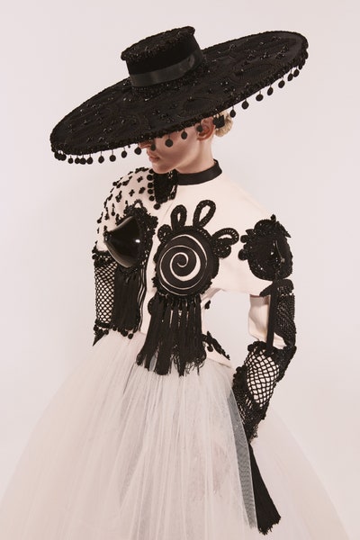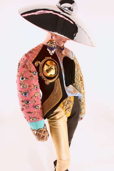 ‘No more cookie-cutter fashion’ said Roseberry in show notes, he asked “What if you combined a little Manet; a little Lacroix; a little 1980s; a little 1880s; a little matador; a little space alien; a little Ingres; a little shimmer; a lot of color?”