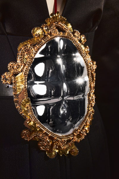 The body motifs were a constant throughout the collection be it in embroidery or jewelry. The accessories in this collection were a clear highlight and have seamlessly bought together all the pieces. The usage of gold has quickly become Roseberry’s signature and it is not only stunning but a quite smart business move(pertaining to jewelry).