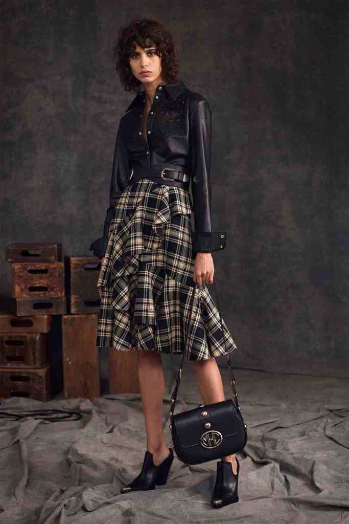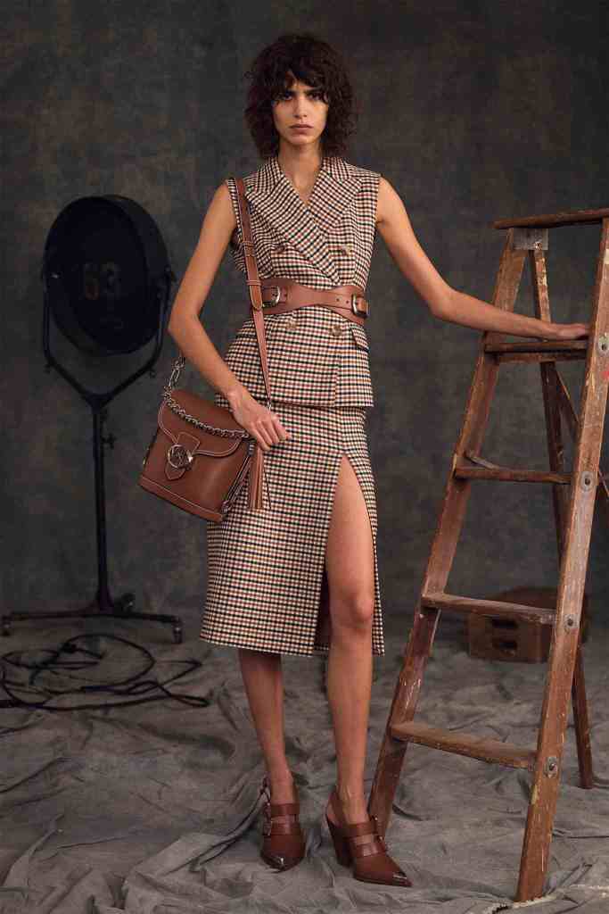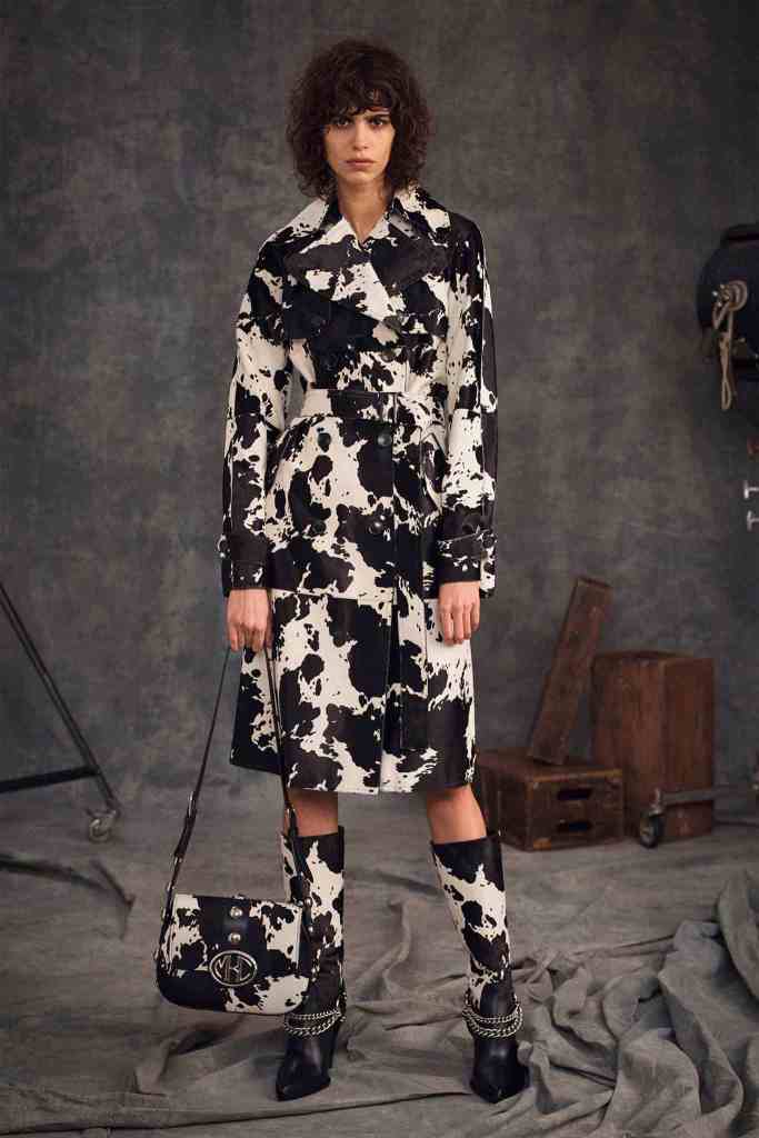 Michael Kors: This collection was quite good, It had a lot of plaid, fringe, and denim and intense cowboy vibes. Loved the skirts suits with the slit (which surprisingly worked well) and there was this full cow print look that was quite nice. A beige fringed trench coat was quite fun. Plaid ruffled skirt? Yes.