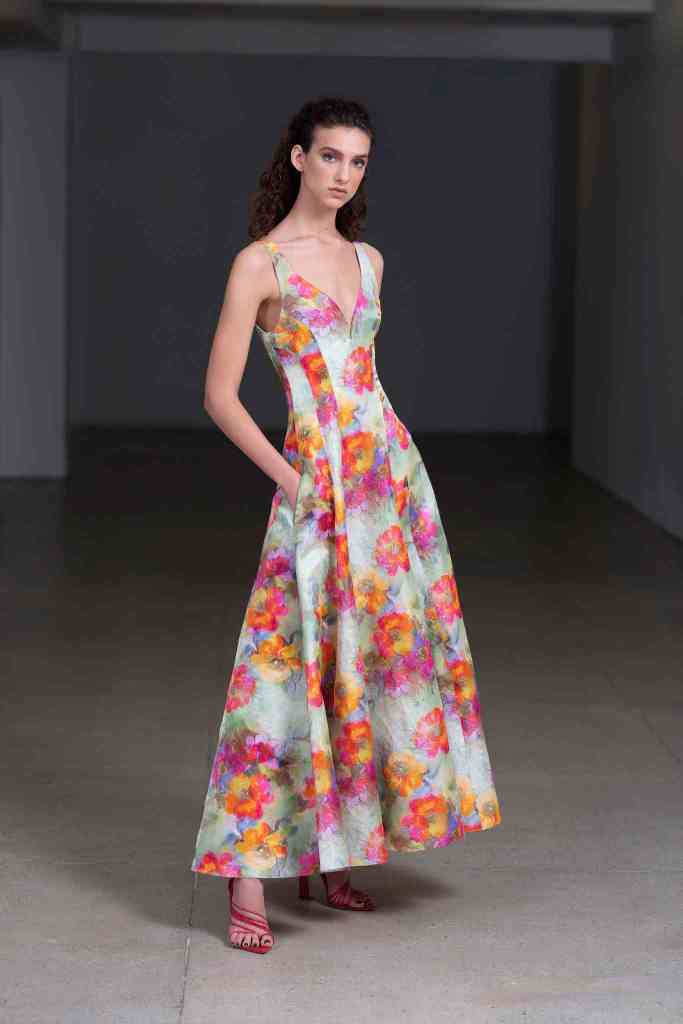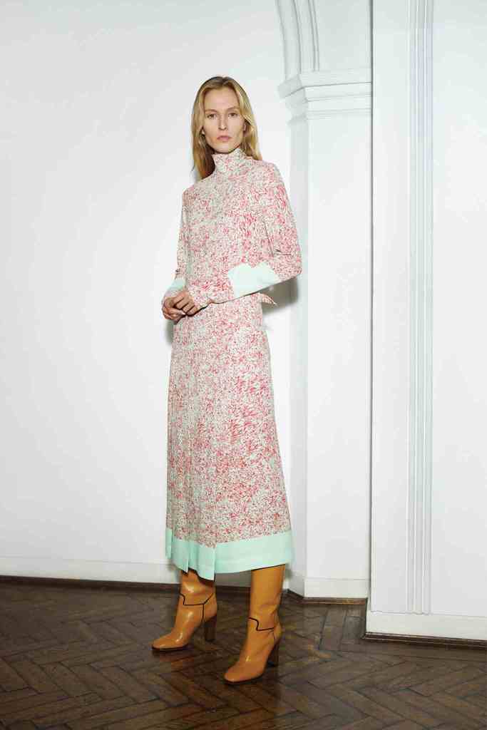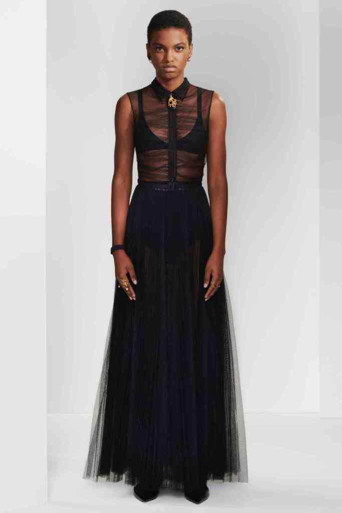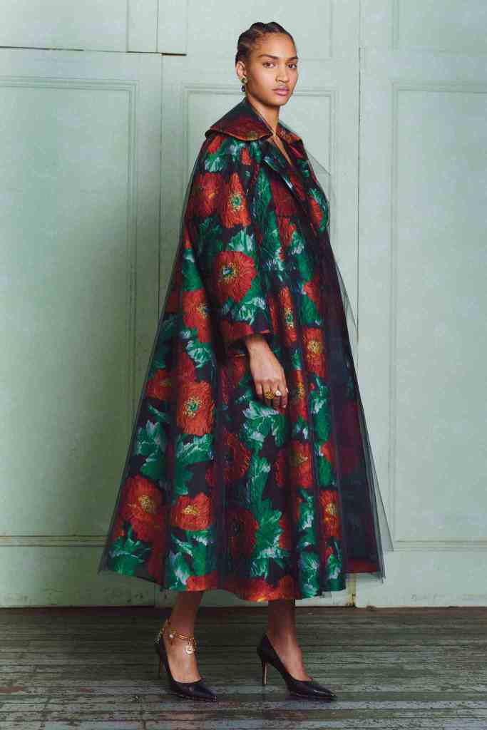 Oscar de la Renta: A lot of summery cotton dresses, leather skirts, tulle ombre dresses and floral prints. The standout look was a floral jacquard cape with a black net overlay and a black gown with a net neckline with floral 3D embroidery. Interior design was the main inspiration here and it resulted in a strong collection.