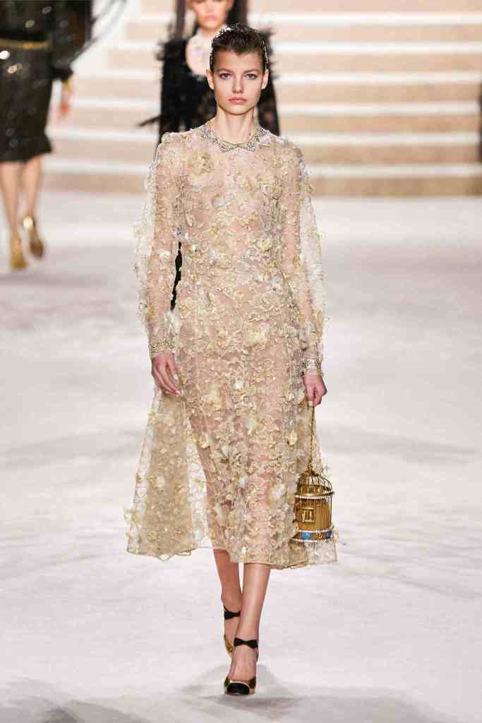 Chanel: Definitely, Virginie’s best collection yet. I loved low-rise skirts, white satin looks and the gold sheer suit was beautiful. Accessories were splendid, there was definitely a lot of them, waist chains were fun and the bags were cute. The collection was mostly black and white but the colored looks were exciting and the ombre dresses were something I didn’t expect it.