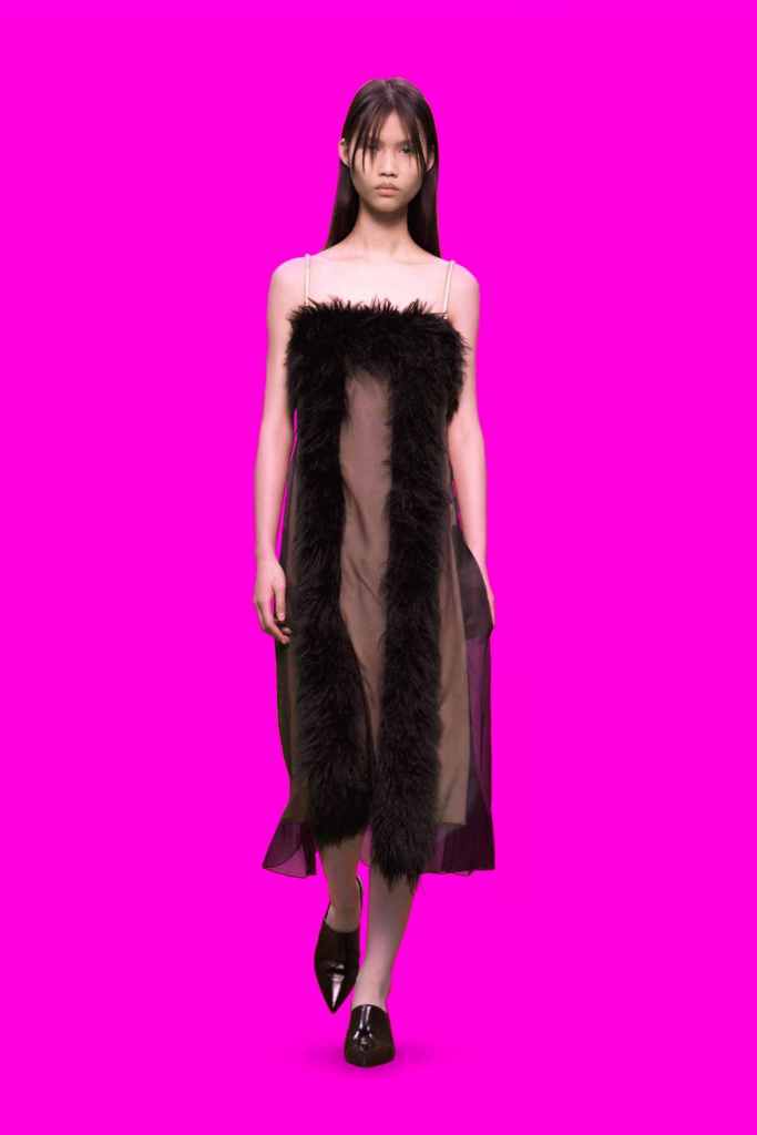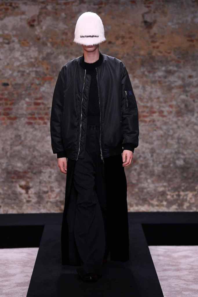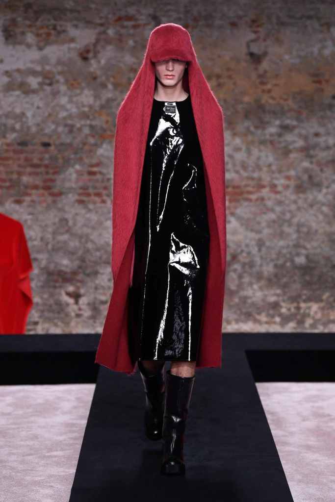 Raf Simons: Almost all black, oversized silhouettes and just the right amount of pretentious. This Simons collection features a wide, wideeee range of fabrics, bright pops of colors and a lot of ground for interpretation. Accessories were a standout in this collection from the skeleton earrings to mohair hats. Favorites were statement glossy coats and colorful satin trails.