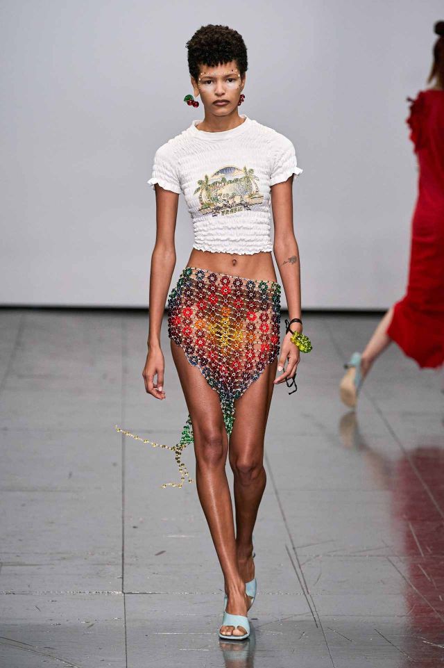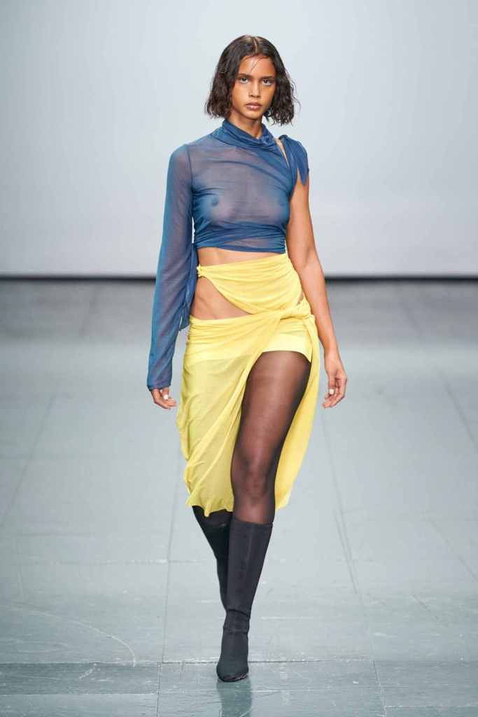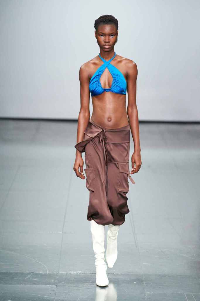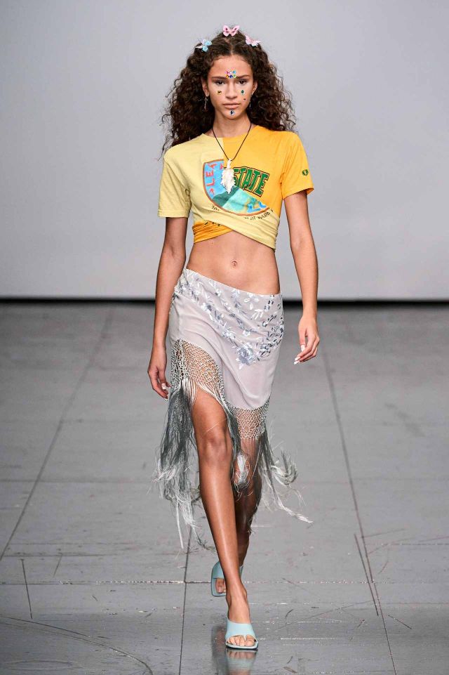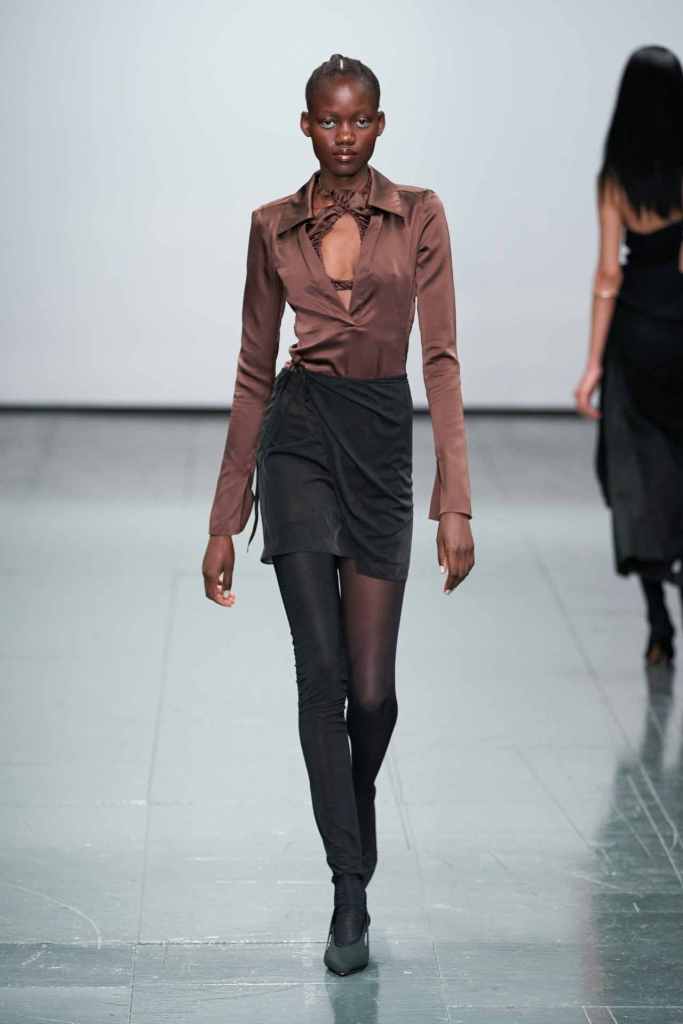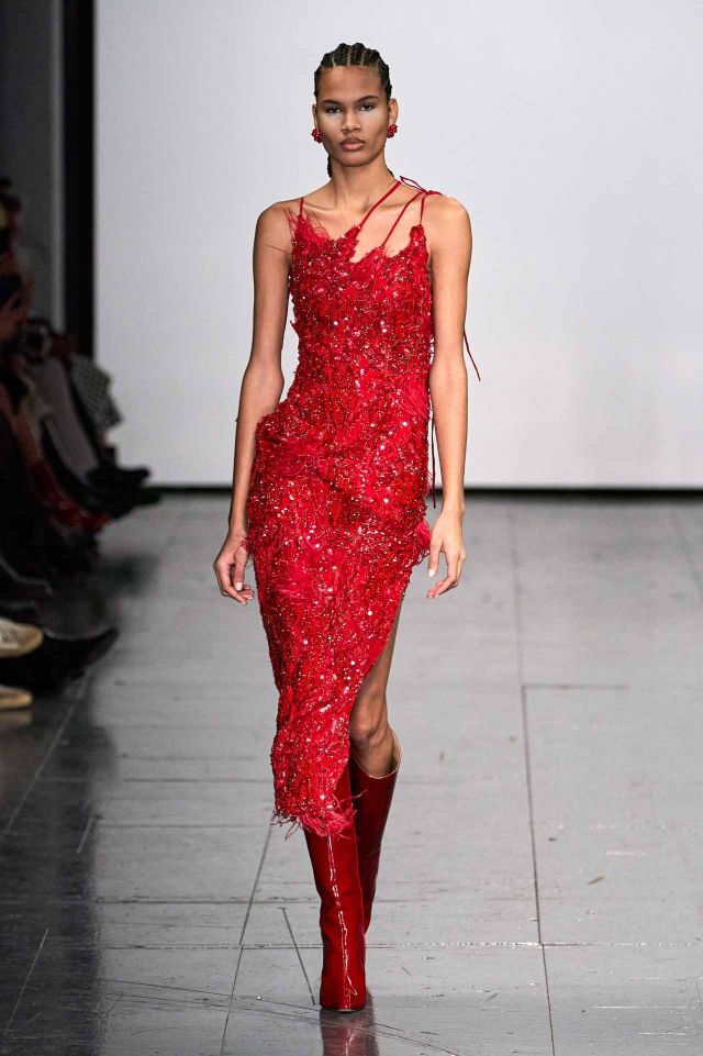 16Arlington: A collection destined to be a social media fav; Y2K x 90s at its best. Mini slinky cuts, retro colors and a load of textures add salt to the ‘trendy’ trends that rule tiktok. The lineup is a long list of glamorous staples that make you wanna take a thousand selfies in a lux hotel bathroom. Fun and fancy are the keywords defining this new age brand. Sheer sequined gowns, tailored leather, draped cutouts were among many highlights.