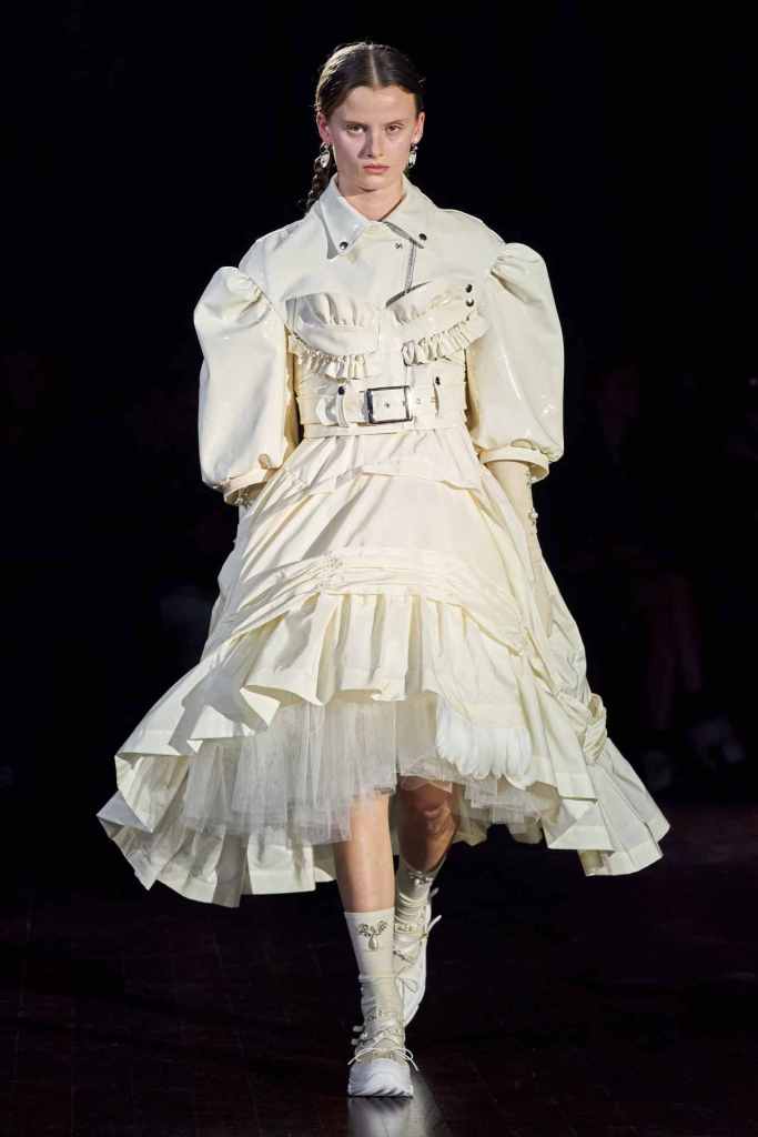 Simone Rocha: Rocha is on a success high and it shows. With each collection, the brand becomes stronger, memorable and innovative. This is giving folklore meets McQueen; clearly TikTok needs to help me name this aesthetic. Big ruffles, flouncy layers, exaggerated silhouettes; from biker jackets to sheer dresses this collection said rangeee. Sometimes gloomy, sometimes romantic – the balance is crucial and done to perfection.