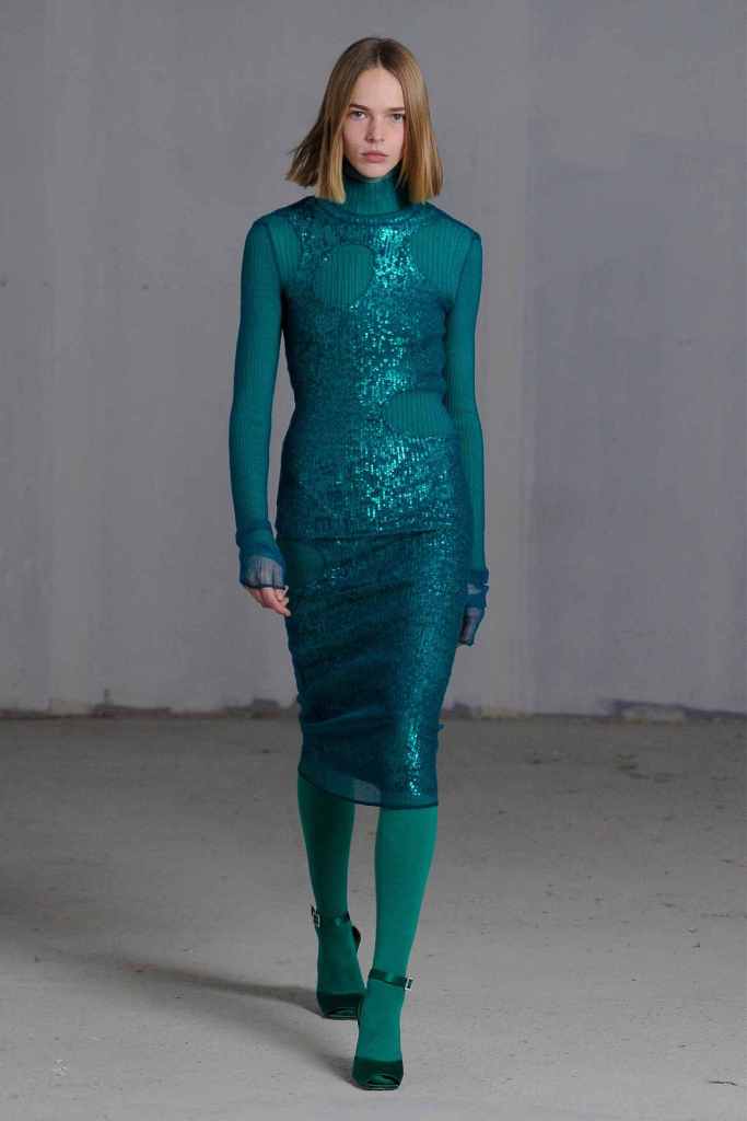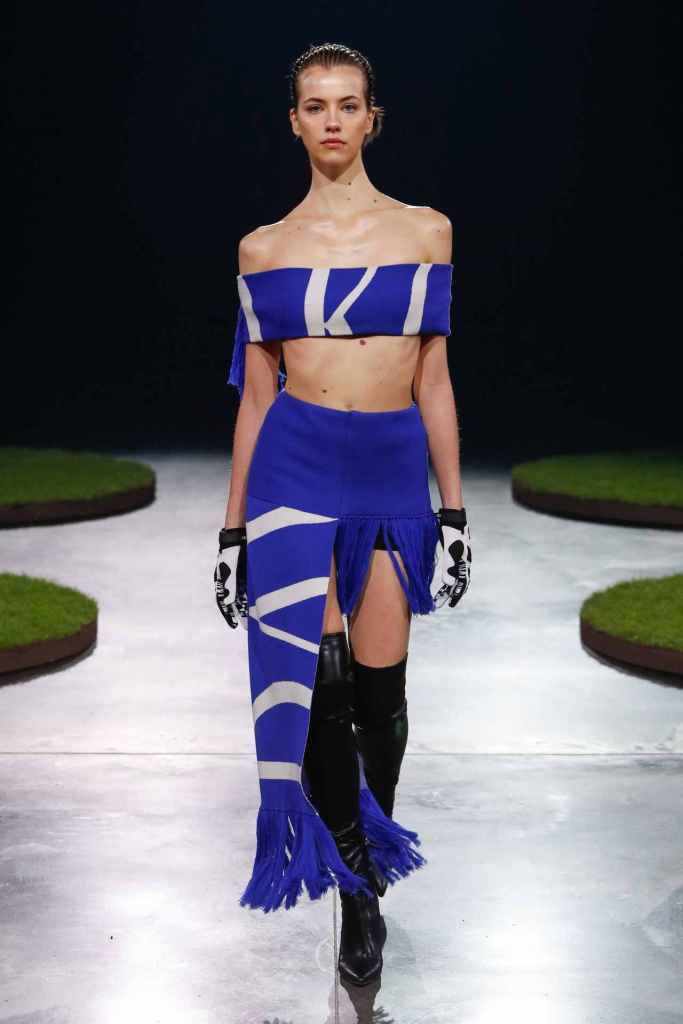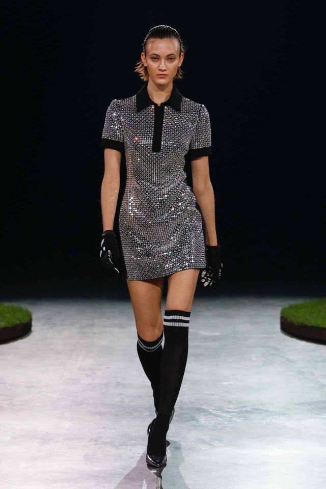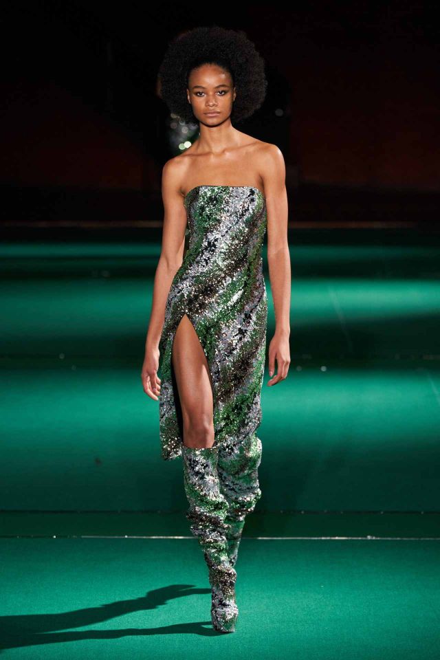 David Koma: Well, hurts to say but this wasn’t a good Koma collection. Even with sportier elements and crystal both Koma signatures, this didn’t give anything. Filled with British references from football to crown jewels. There was a noticeable focus on ‘cool girl’ outerwear covering the slinky shiny minidresses. The completely crystal loaded polo dress was a look to remember and a guilty personal favorite.