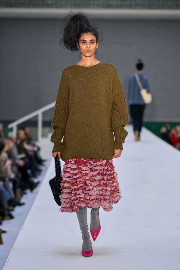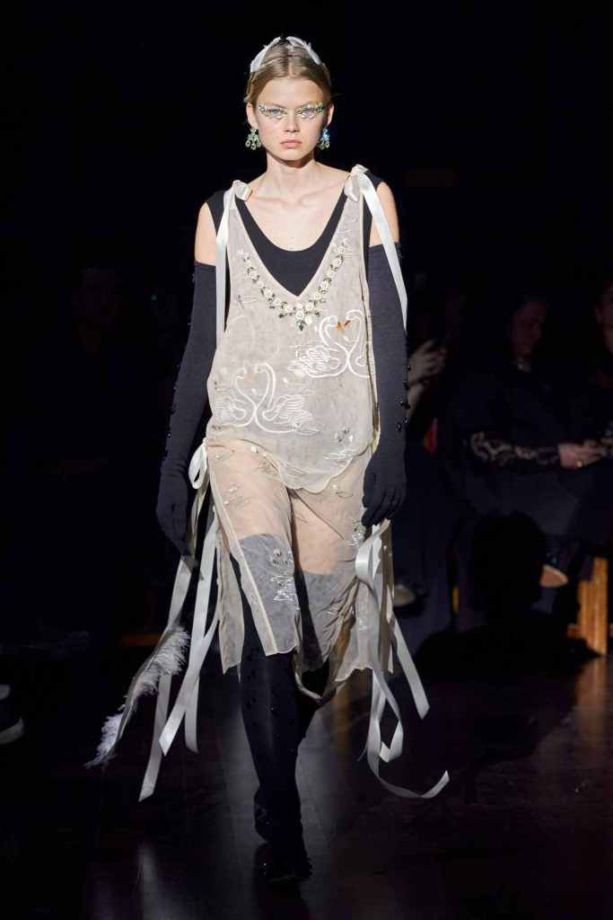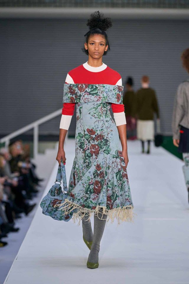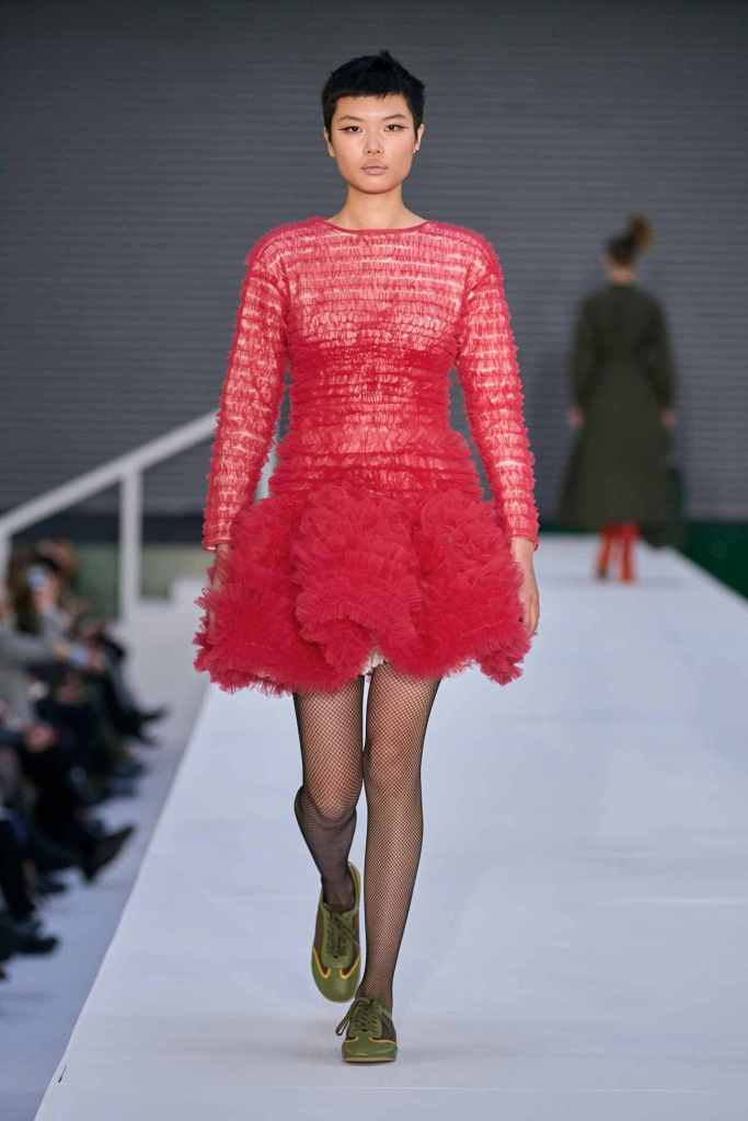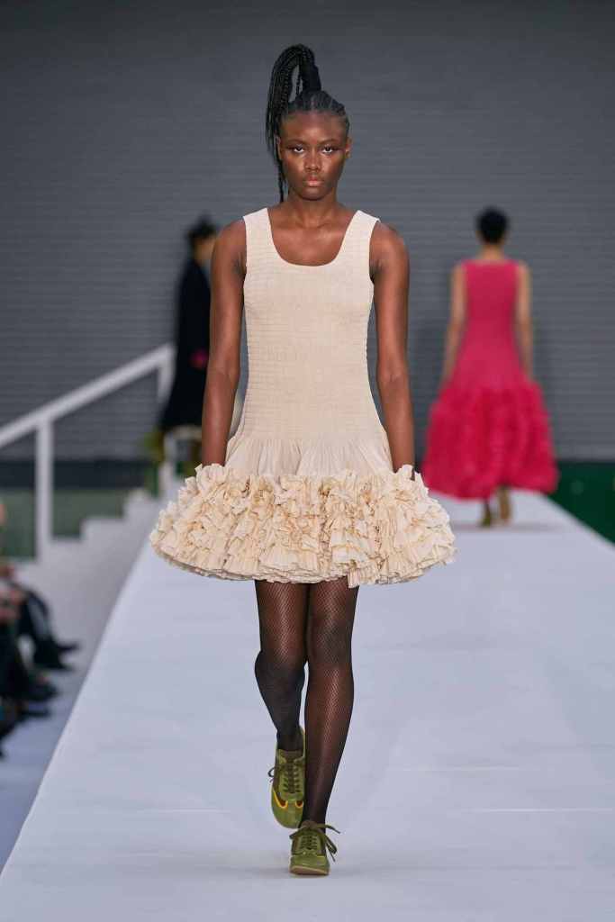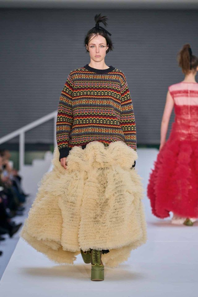 Molly Goddard: This did feel like quiet and underwhelming collection to me while yes there were some very good looks, and the pieces individually were quite as well, it was the styling that threw the whole collection off. The casual grandma aesthetic was frumpier than ever and the lack of tulle was disappointing. There was some interesting usage of tulle but not strong enough.
