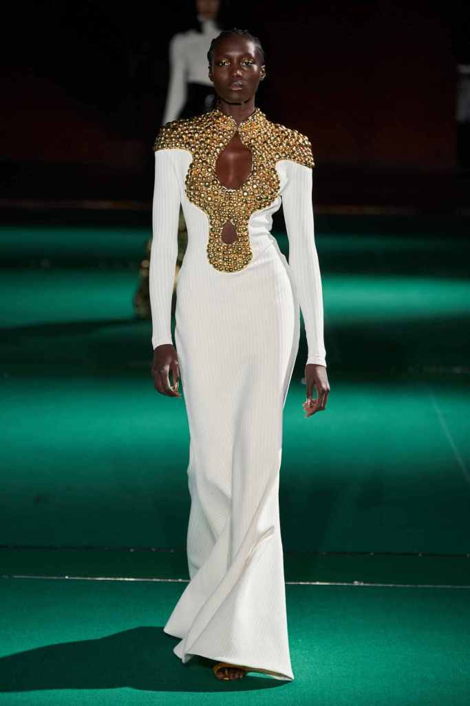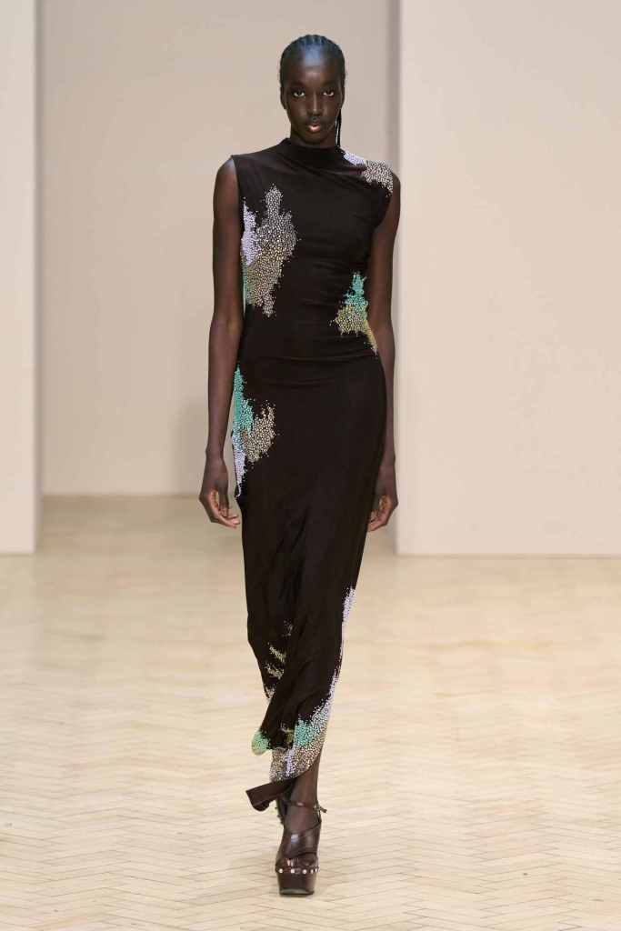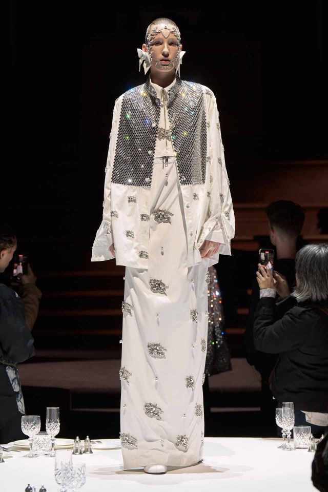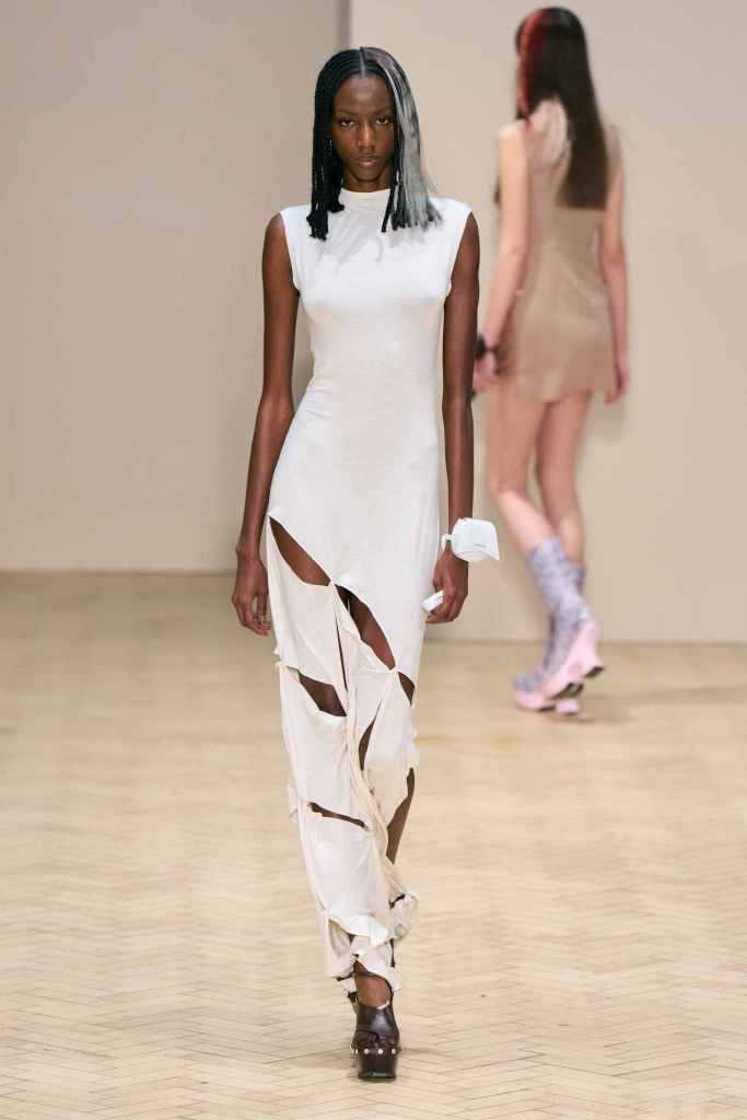 Nensi Dojaka: Probably the best Dojaka lineup yet. Maybe it’s the LVMH price impact but there was an added refinement and luxe in this collection. The cuts were neater and the layering was more delicate than ever. From minidresses to suits, the brand’s signatures were present throughout. The tailoring was rather remarkable along with newer additions to the band design aesthetic.