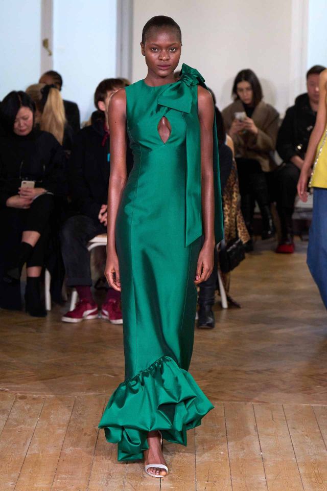 Emilia Wickstead: With each collection, Wickstead seems to get more romantic. Exquisite tailoring paired with classic silhouettes brings life to the contemporary fairy tale aesthetic that the brand exemplifies. The perfect looks to get photographed somewhere in Europe. Though this one was one of the more sensual ones, passionate colors and chic cuts exude indulgence. A standout dress was a blue printed dress with underboob cutouts was quite a moment; so was a gold roughly sequined dress with a stole.