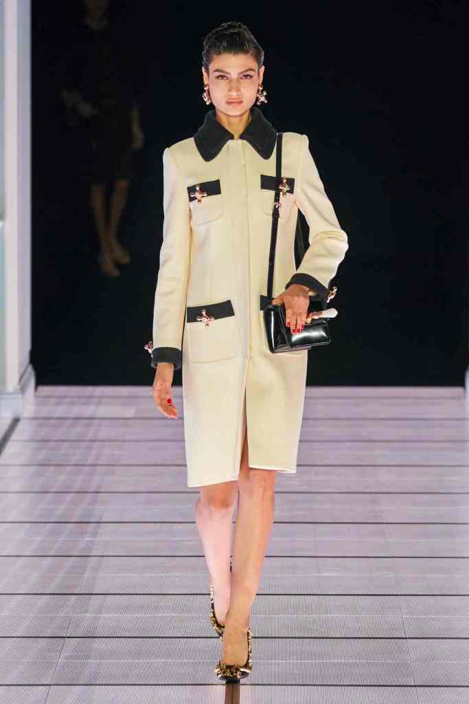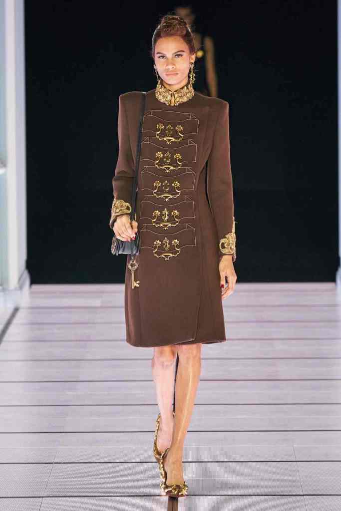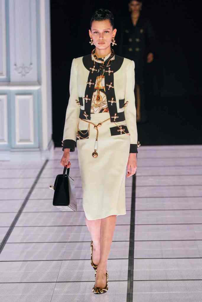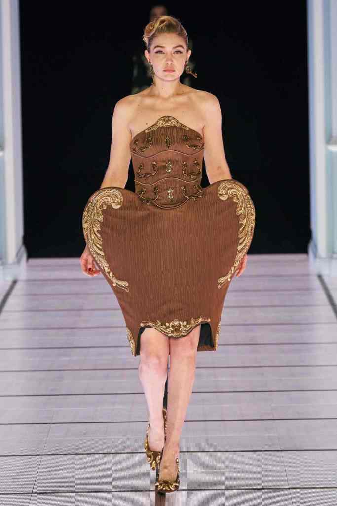 The most theatrical show of the season. The way Jeremy Scott presented a blend of surrealism and camp is truly magical. It all started with a sketch of a cabinet, later modeled by Gigi Hadid on the runway. This collection featured everything you could find in a house( a very old money vintage house) – cuckoo clock, cabinets, huge golden harps, mirrors, drawers lampshade and gorgeous gorgeous upholstery. The details are highlights always; the gold details, couture-like accessories and dramatic Stephen Jones headpieces.