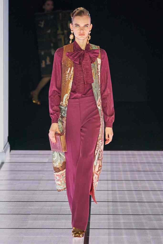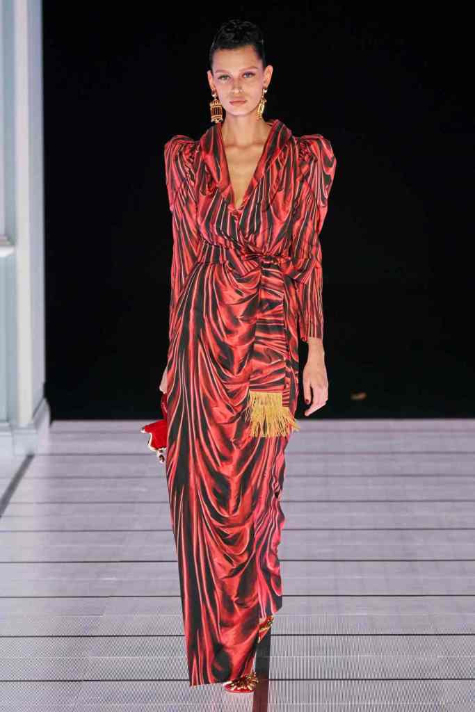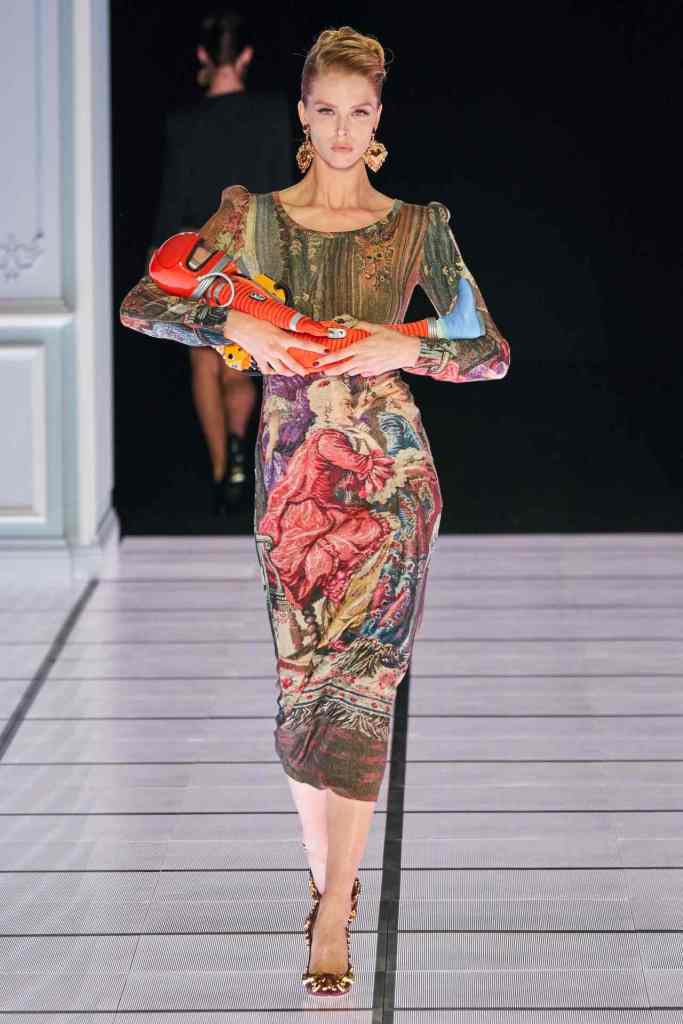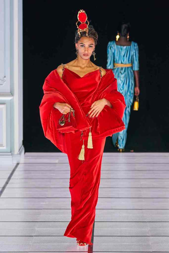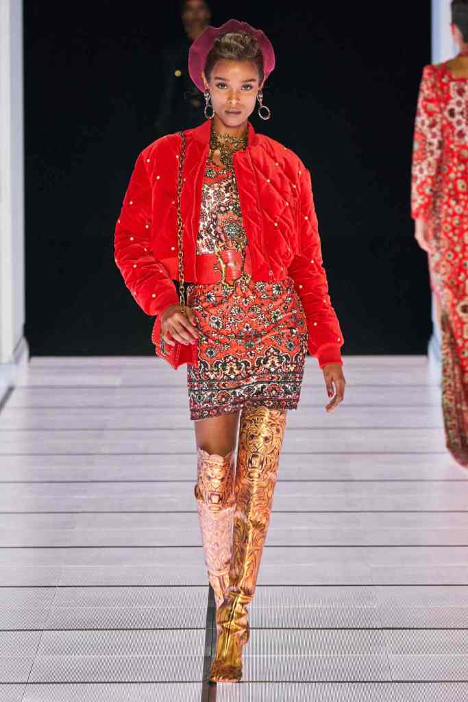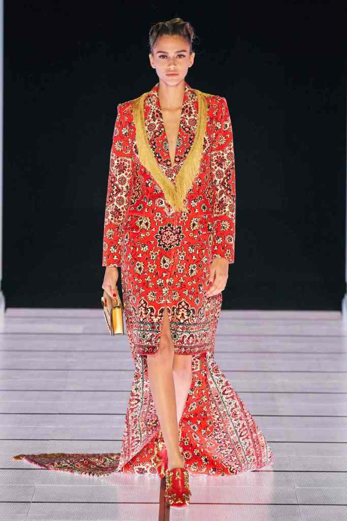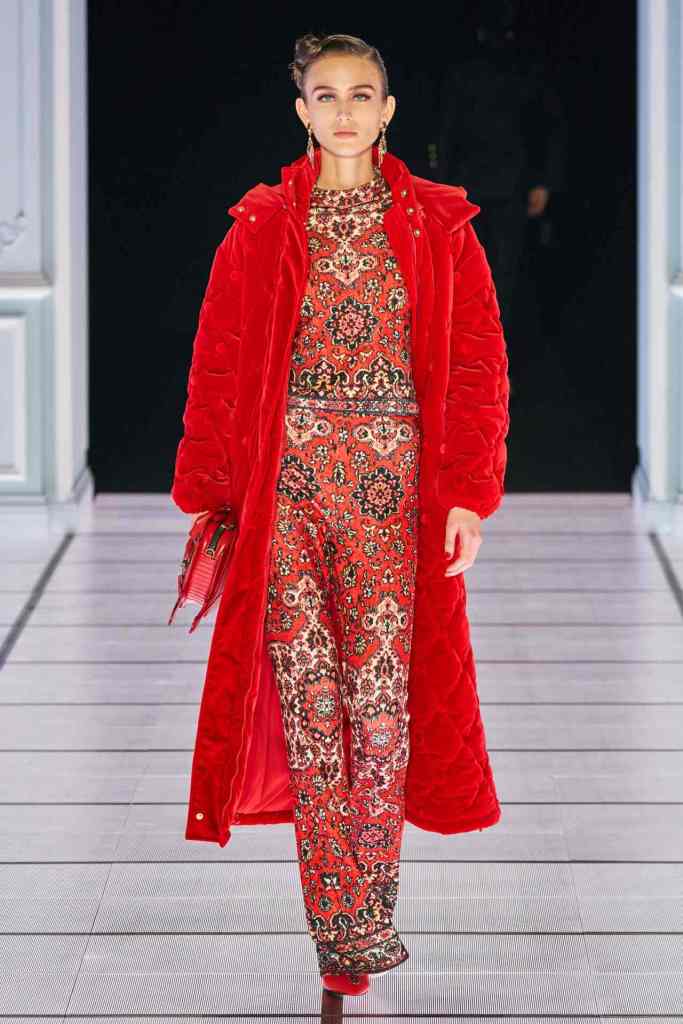 Scott told vogue “I was thinking about the furniture you’d find in a mansion: the Chesterfield dresser, grandfather clocks, picture frames, Persian rugs, birdcages,”. The set design was a replica of based on the movie ‘2001: A Space Odyssey Models walked in a 90s-esque style, loaded with extra glam and attitude. Scott directed each model backstage to truly capture the essence of each look. And to close the show we have Scott in a bright red spacesuit, he knows how to create a moment.